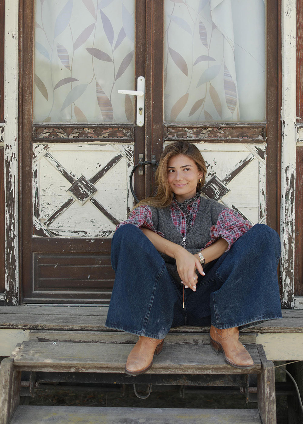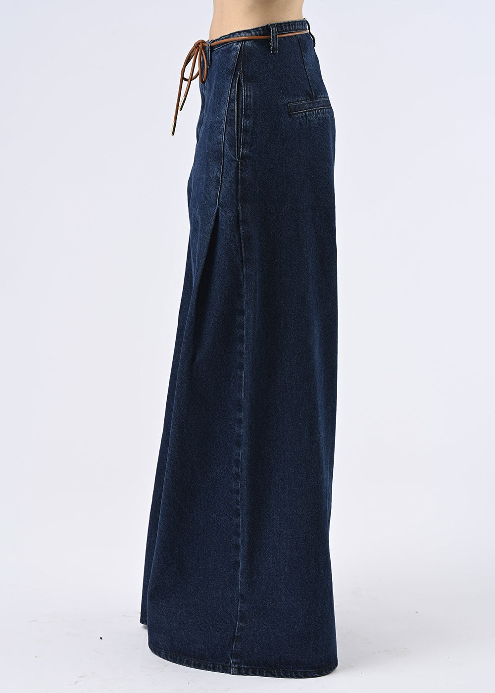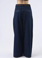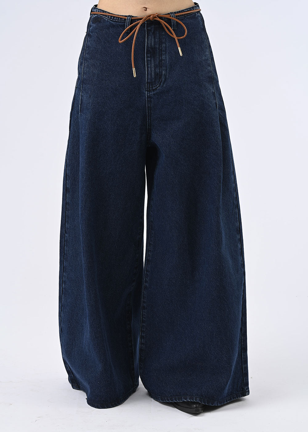 Jeans with a loose, very flared cut, highlighted by a marked waist for a modern and assertive silhouette.