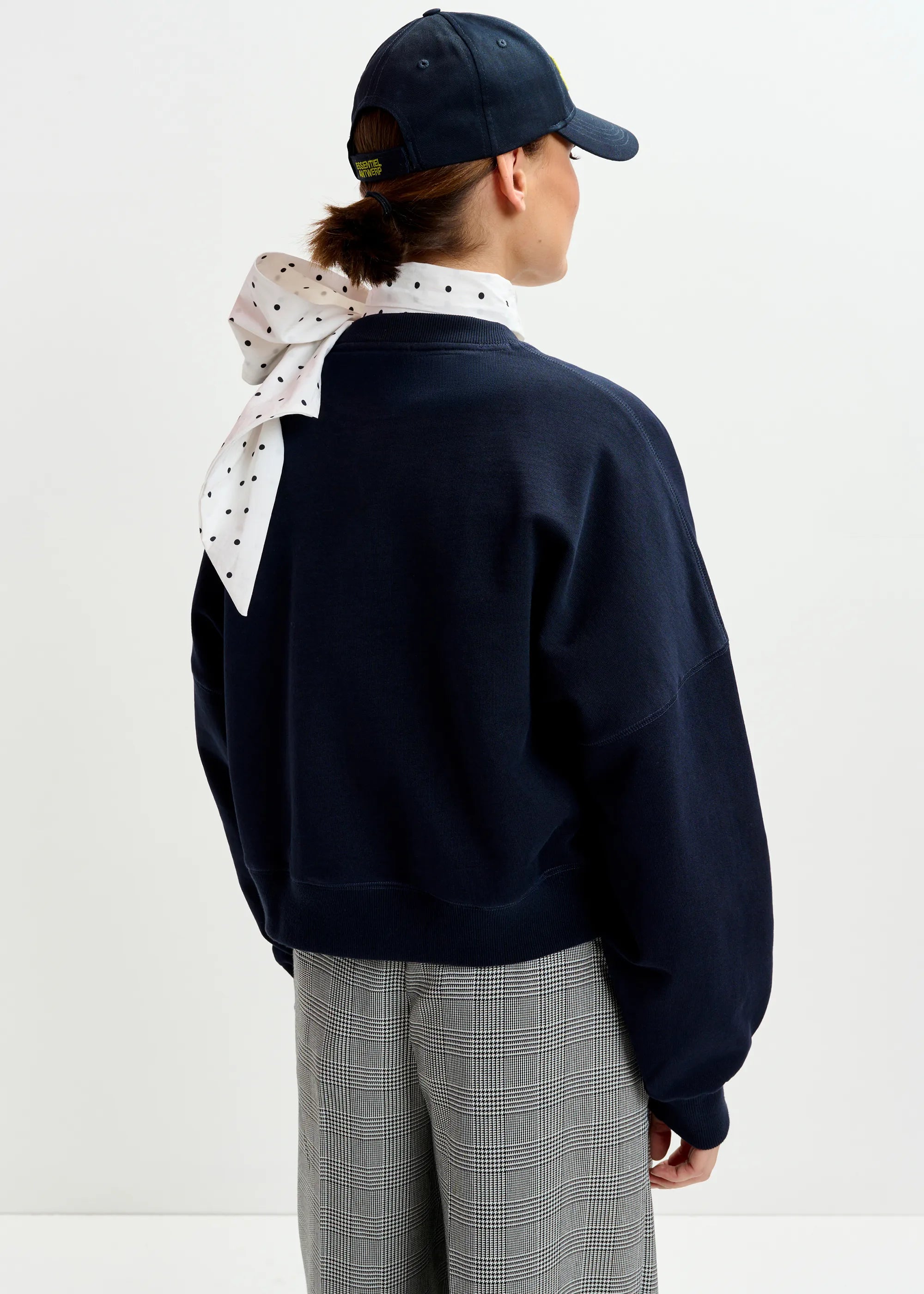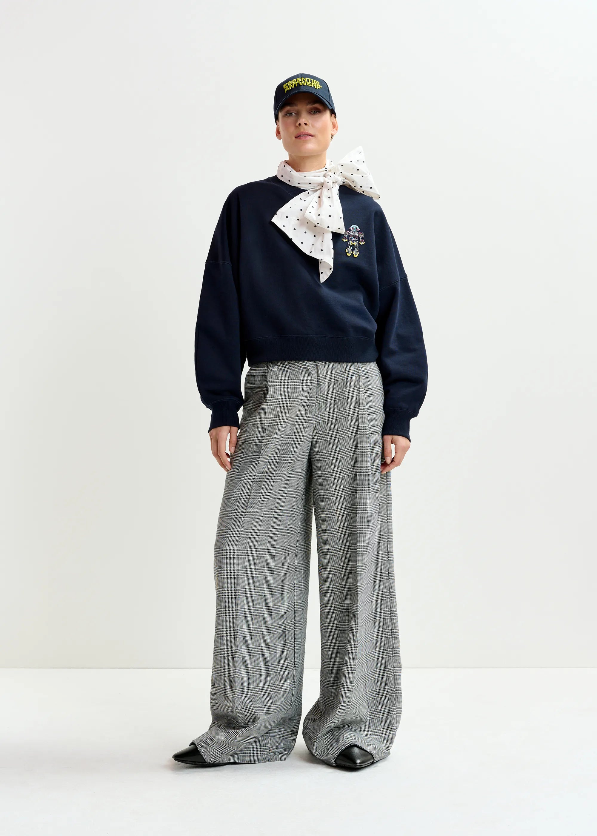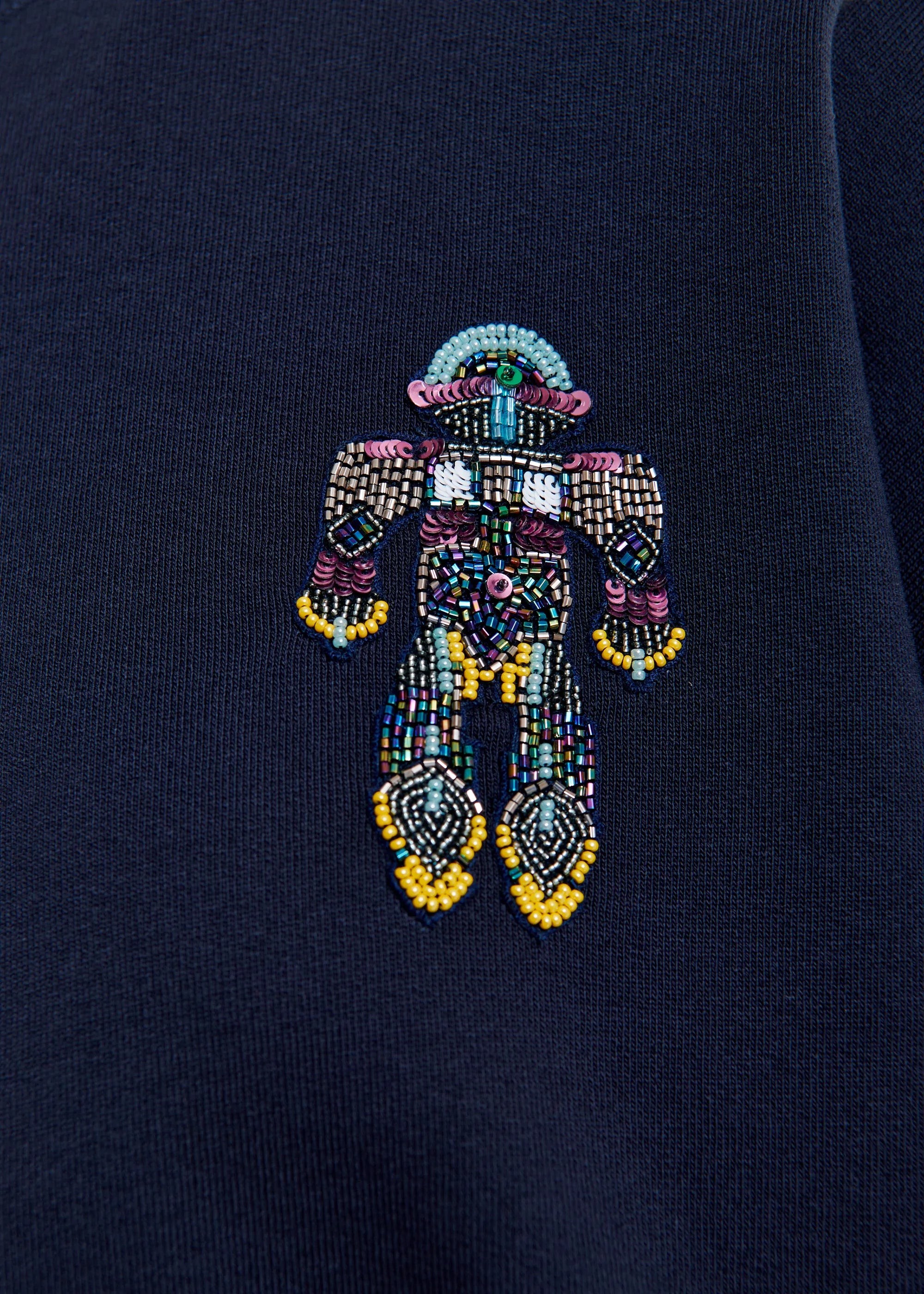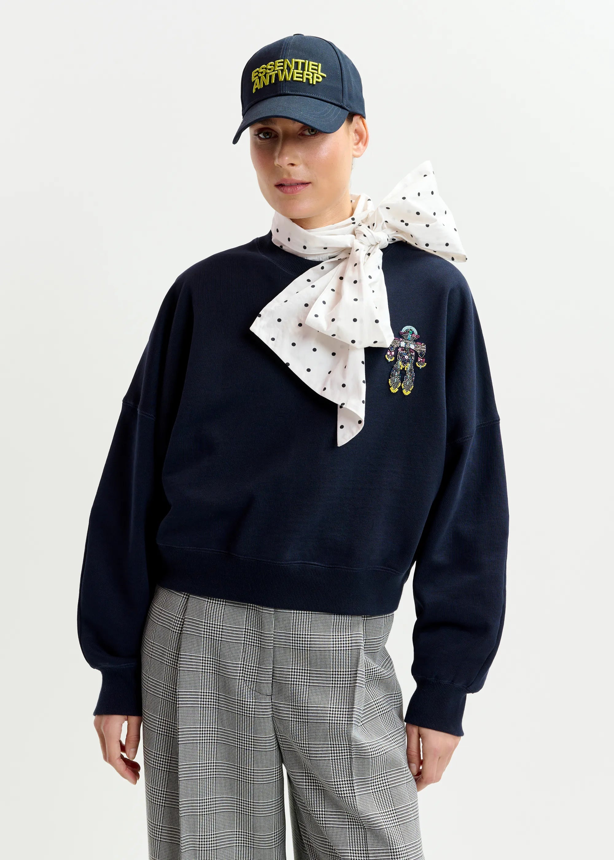 ESSENTIEL ANTWERP Navy and multicolour cotton sweatshirt with sequin and bead-embroidery
