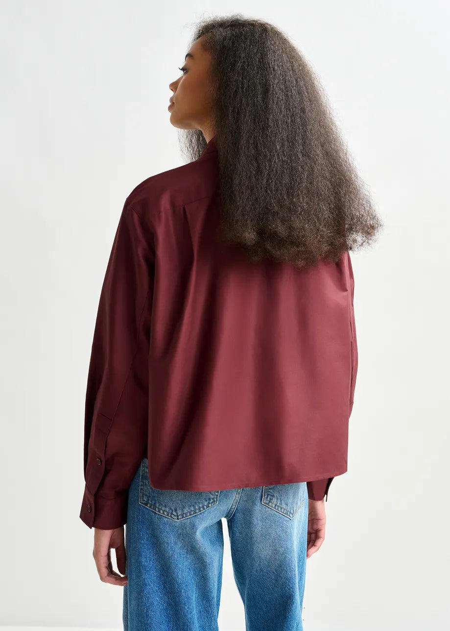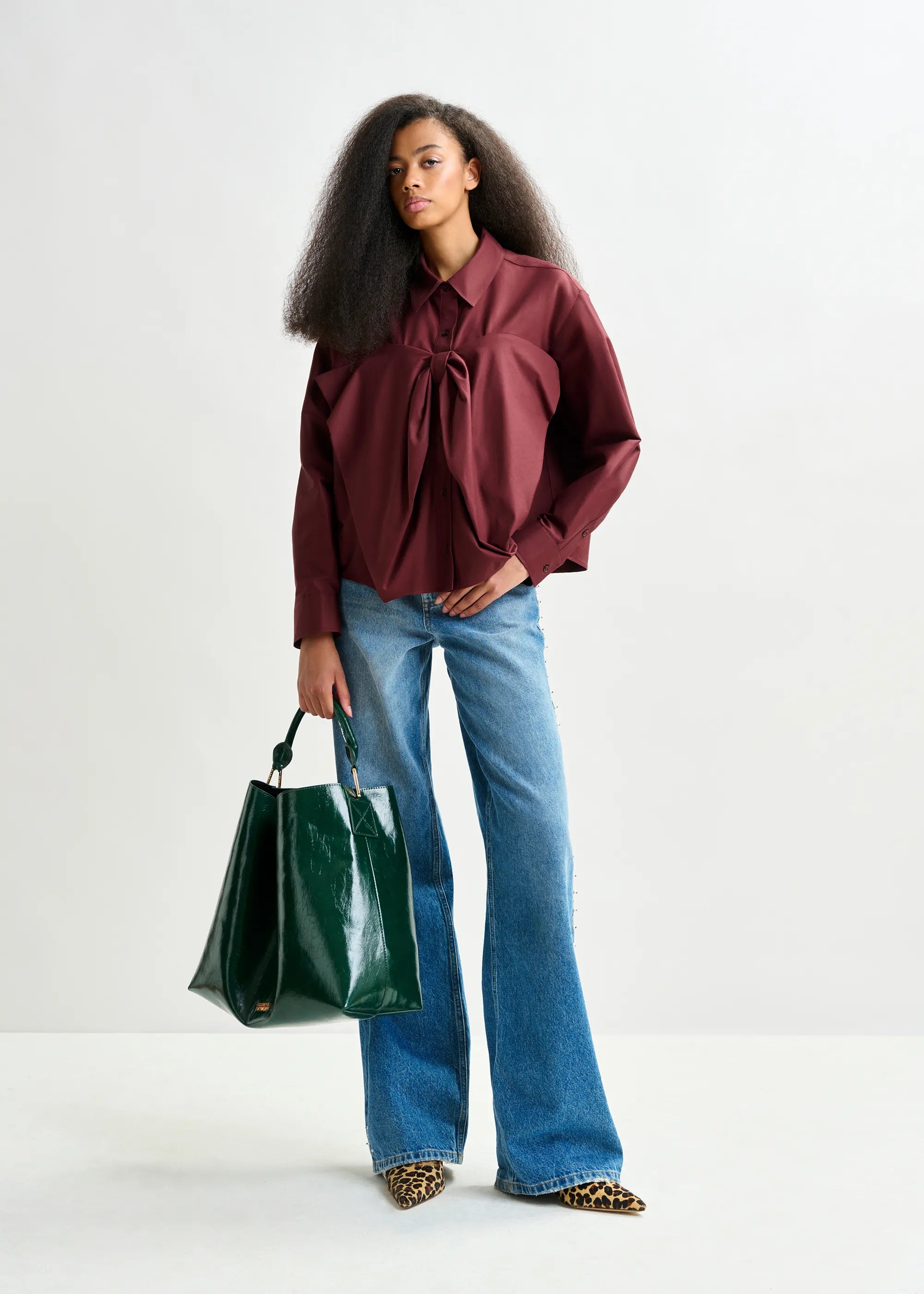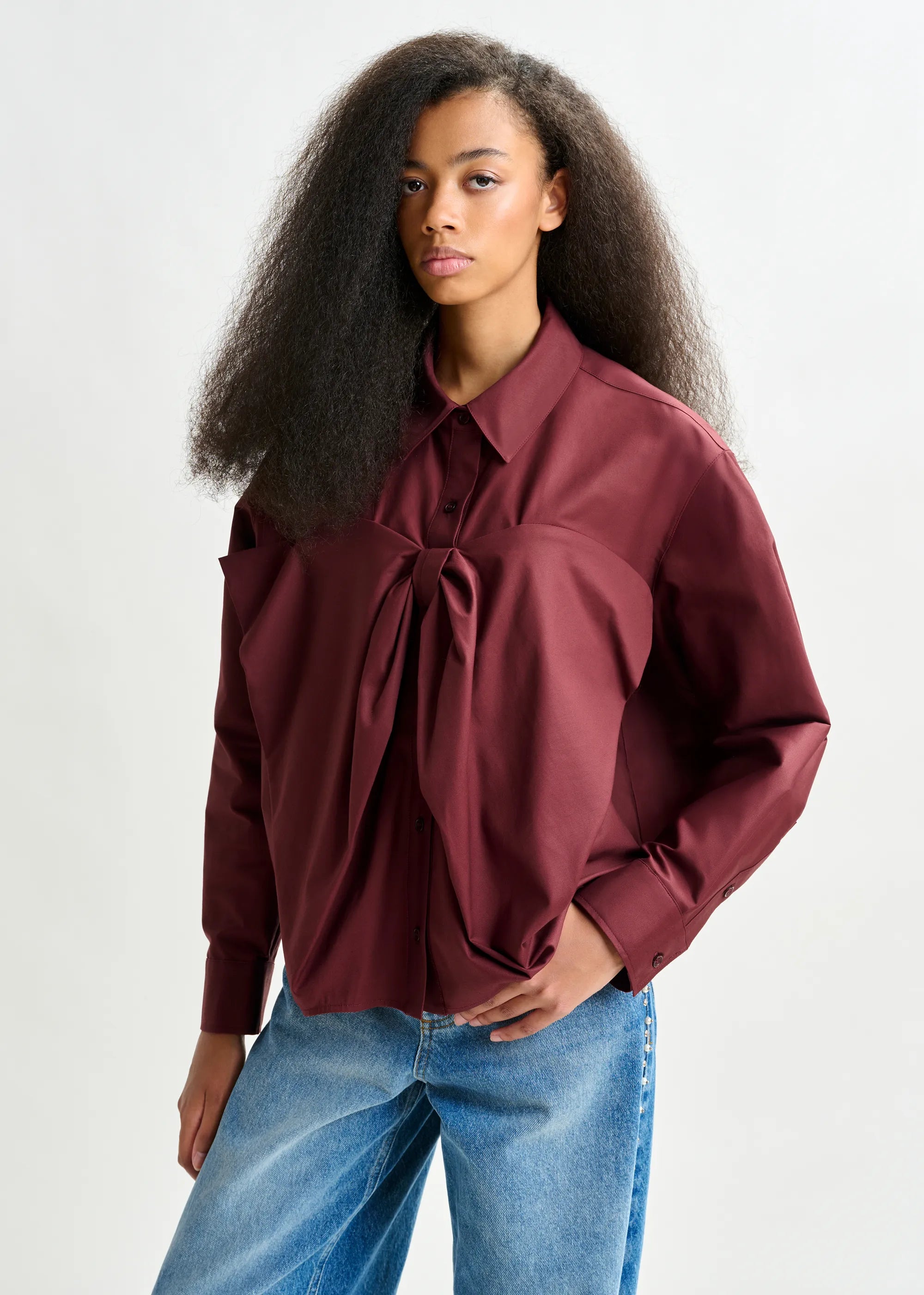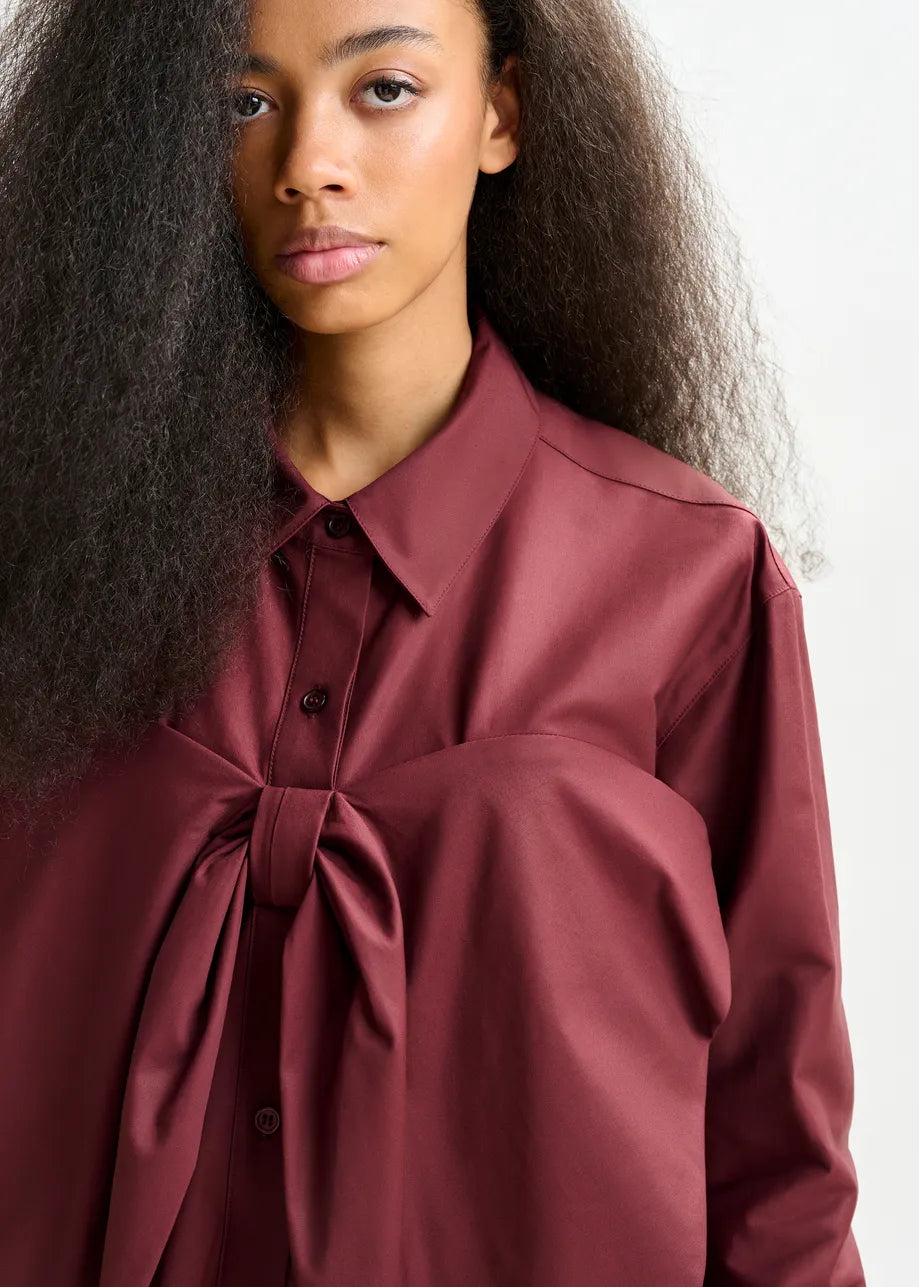 ESSENTIEL ANTWERP Ibow Bow-Detailed Cotton- Blend Shirt - Burgundy