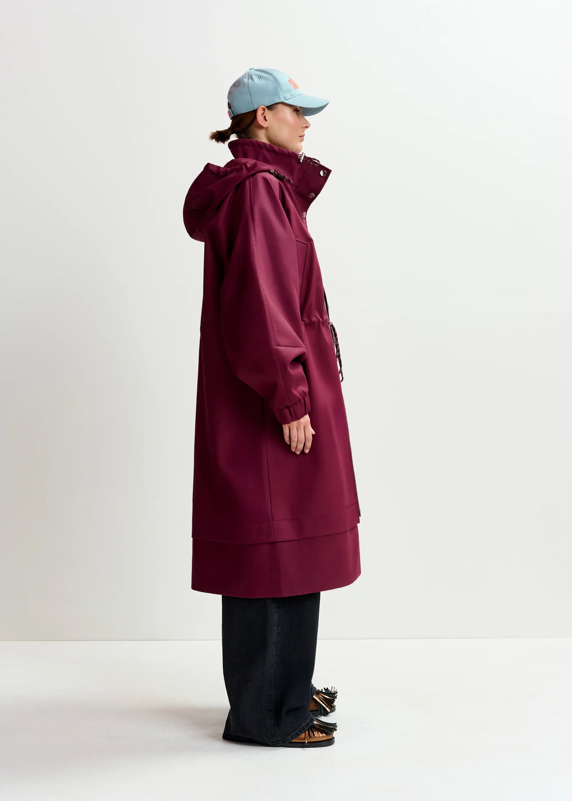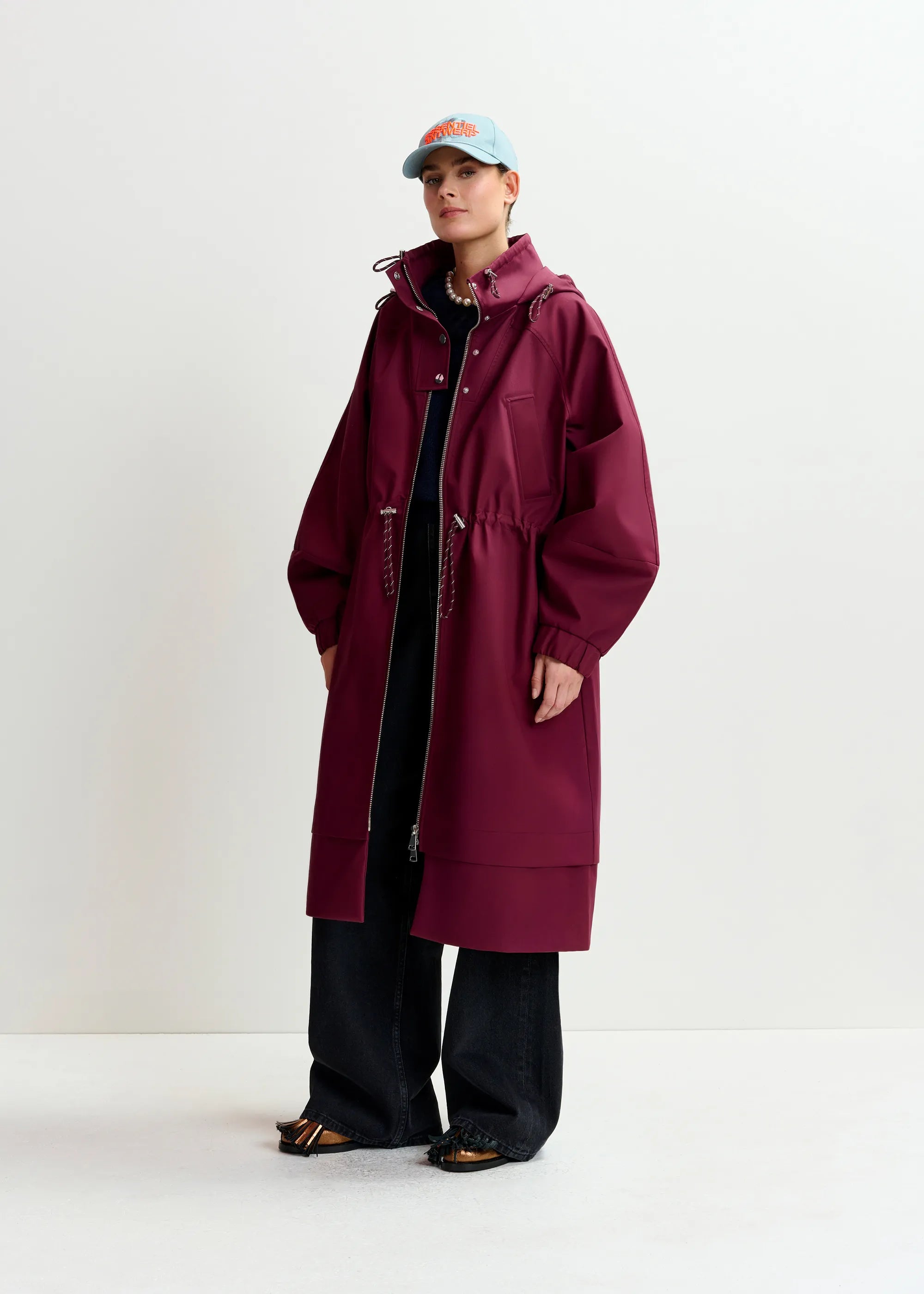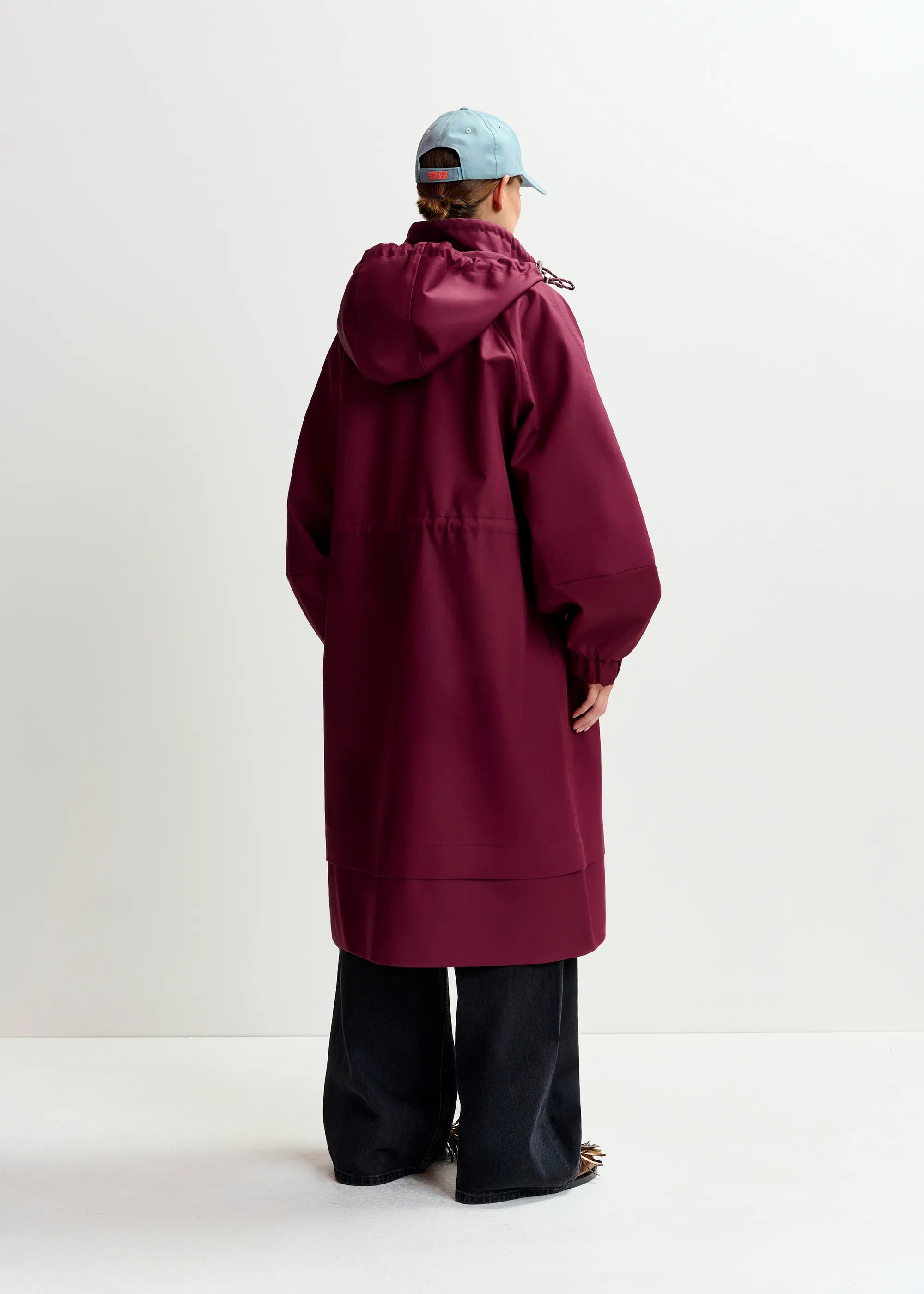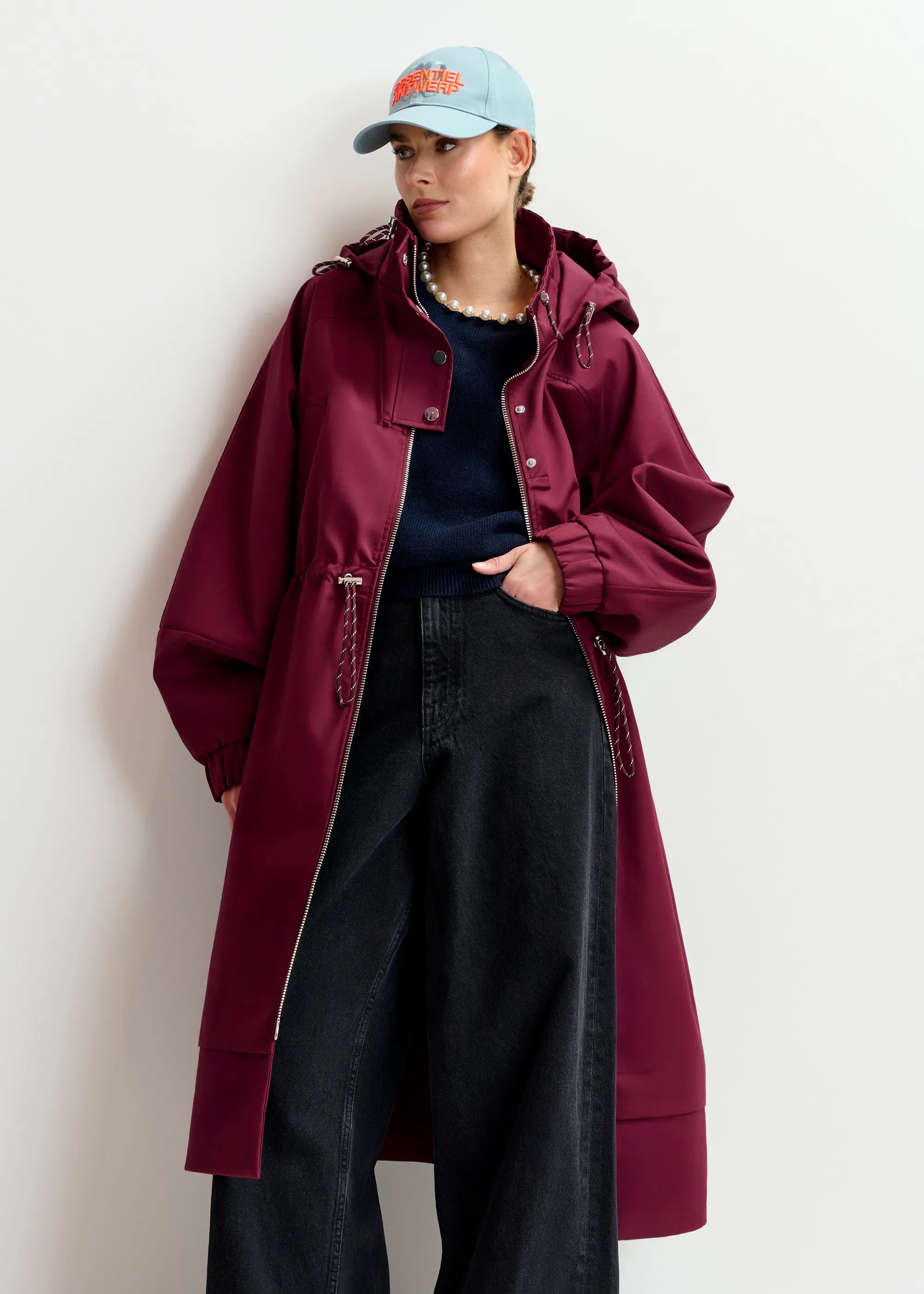 ESSENTIEL ANTWERP Identify Burgundy Oversized Hooded Raincoat