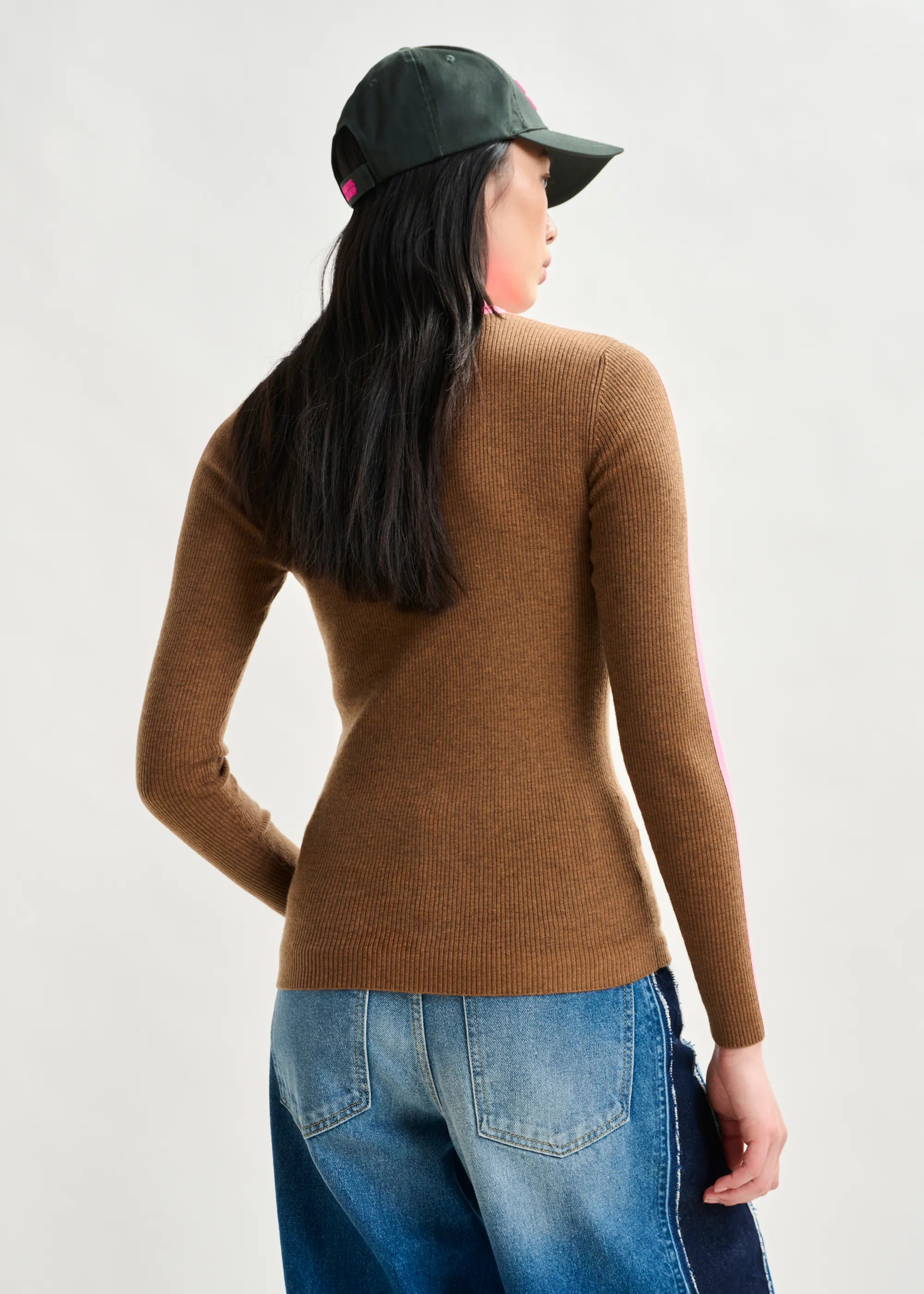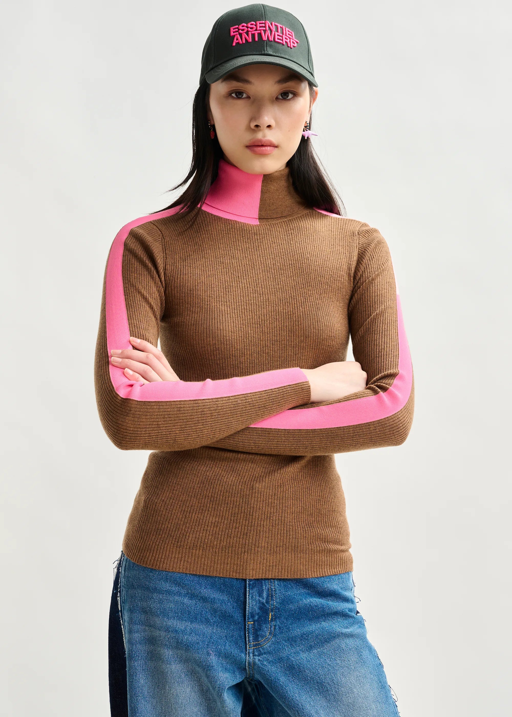 ESSENTIEL ANTWERP Brown and pink two-tone wool-blend turtleneck sweater