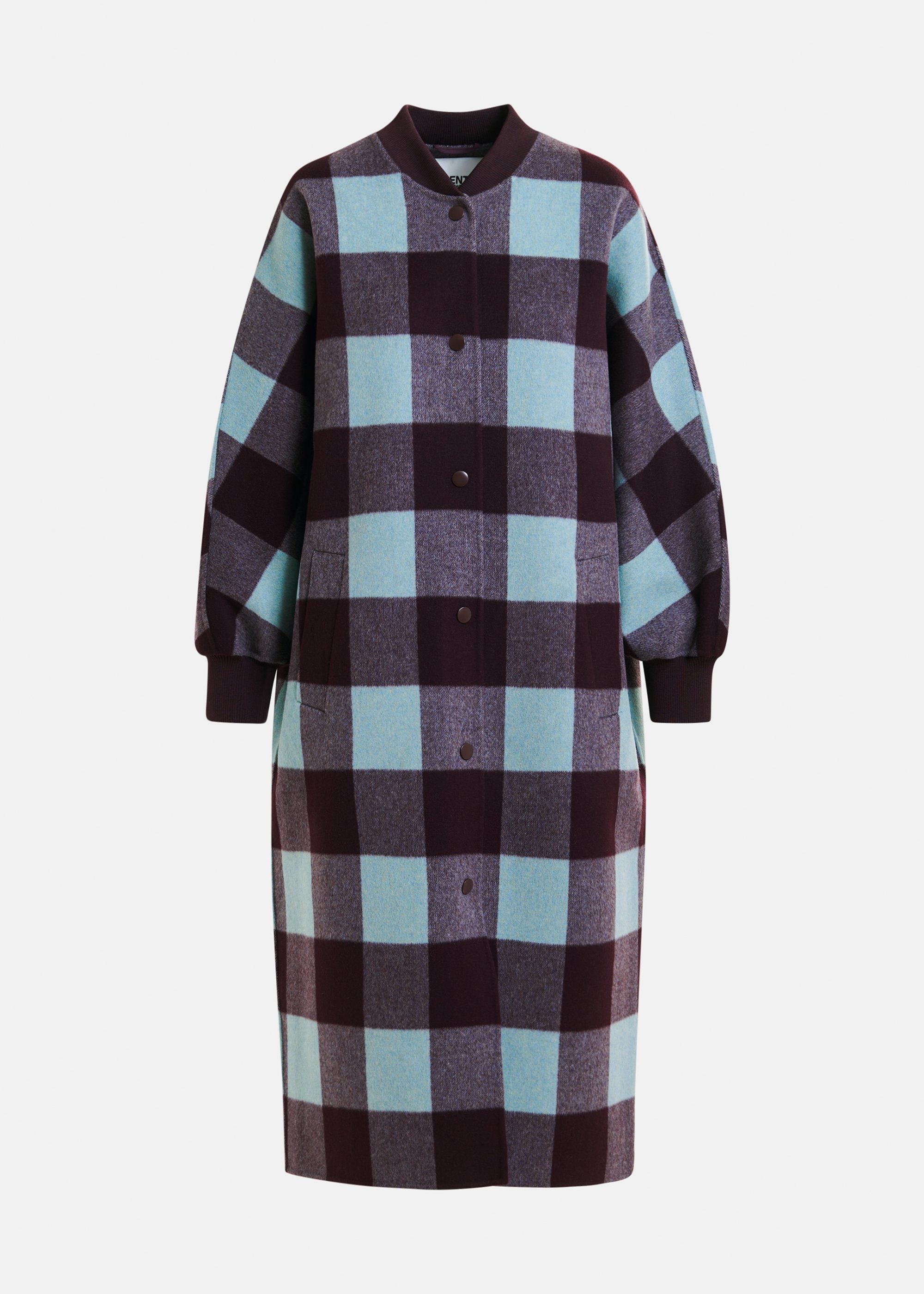ESSENTIEL ANTWERP Ifit Deep Burgundy and Blue Wool Check Coat