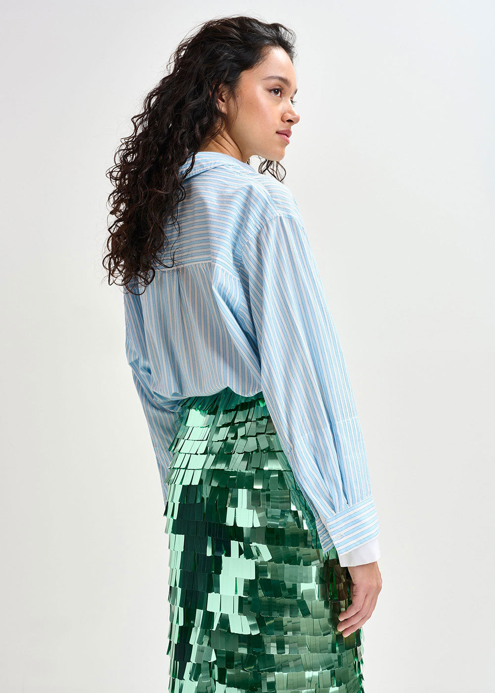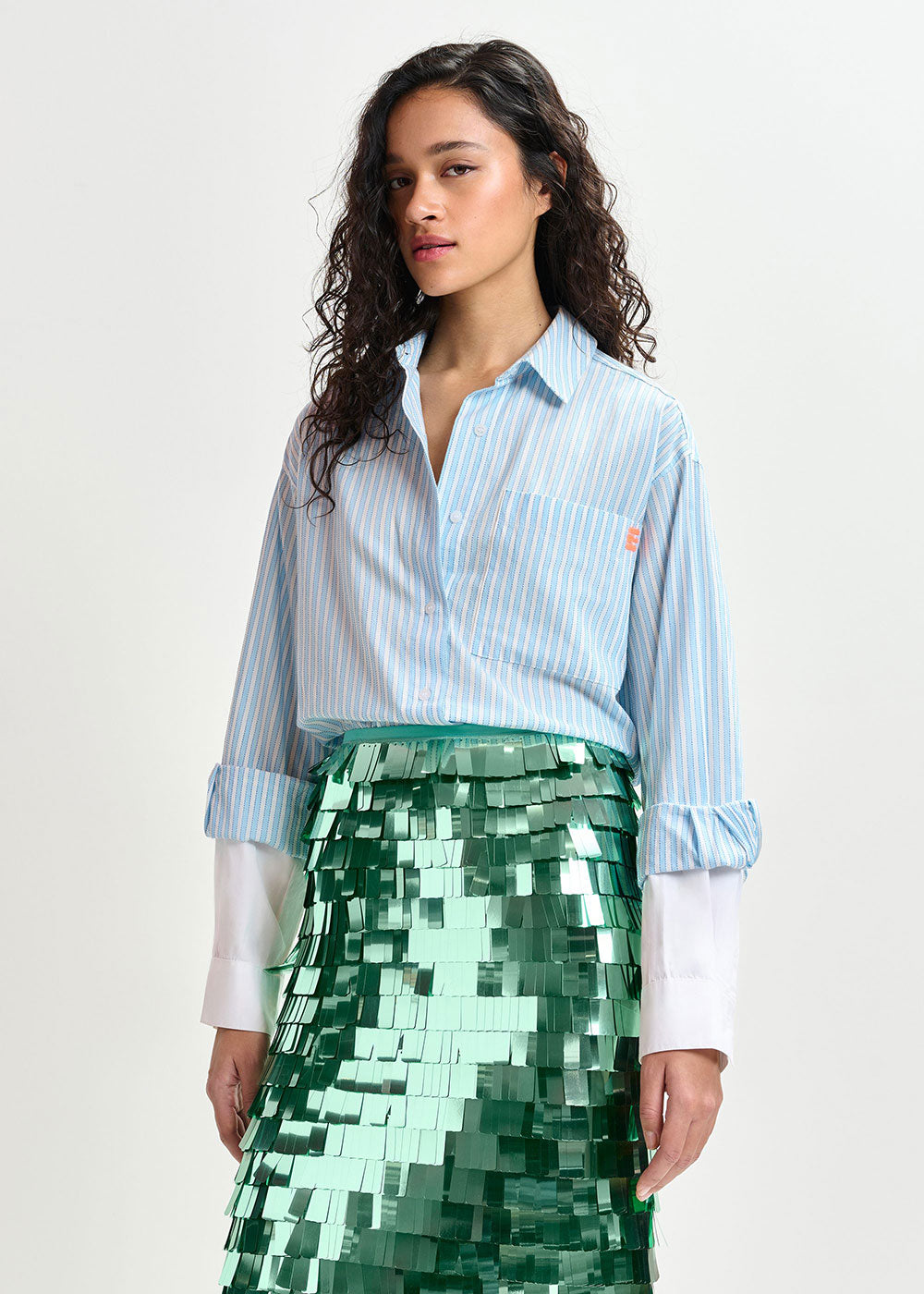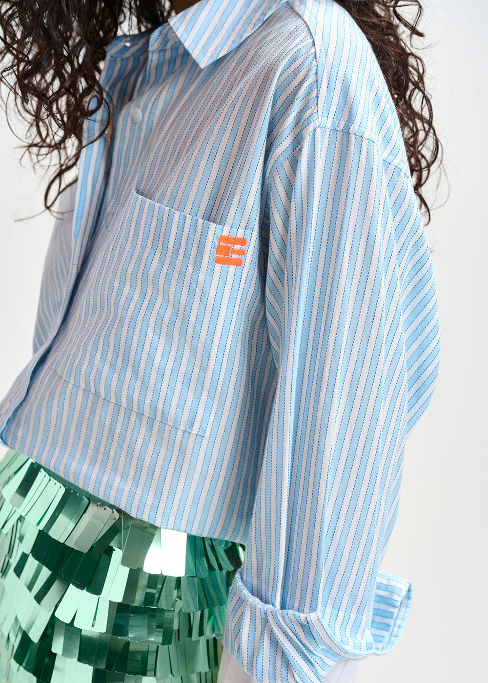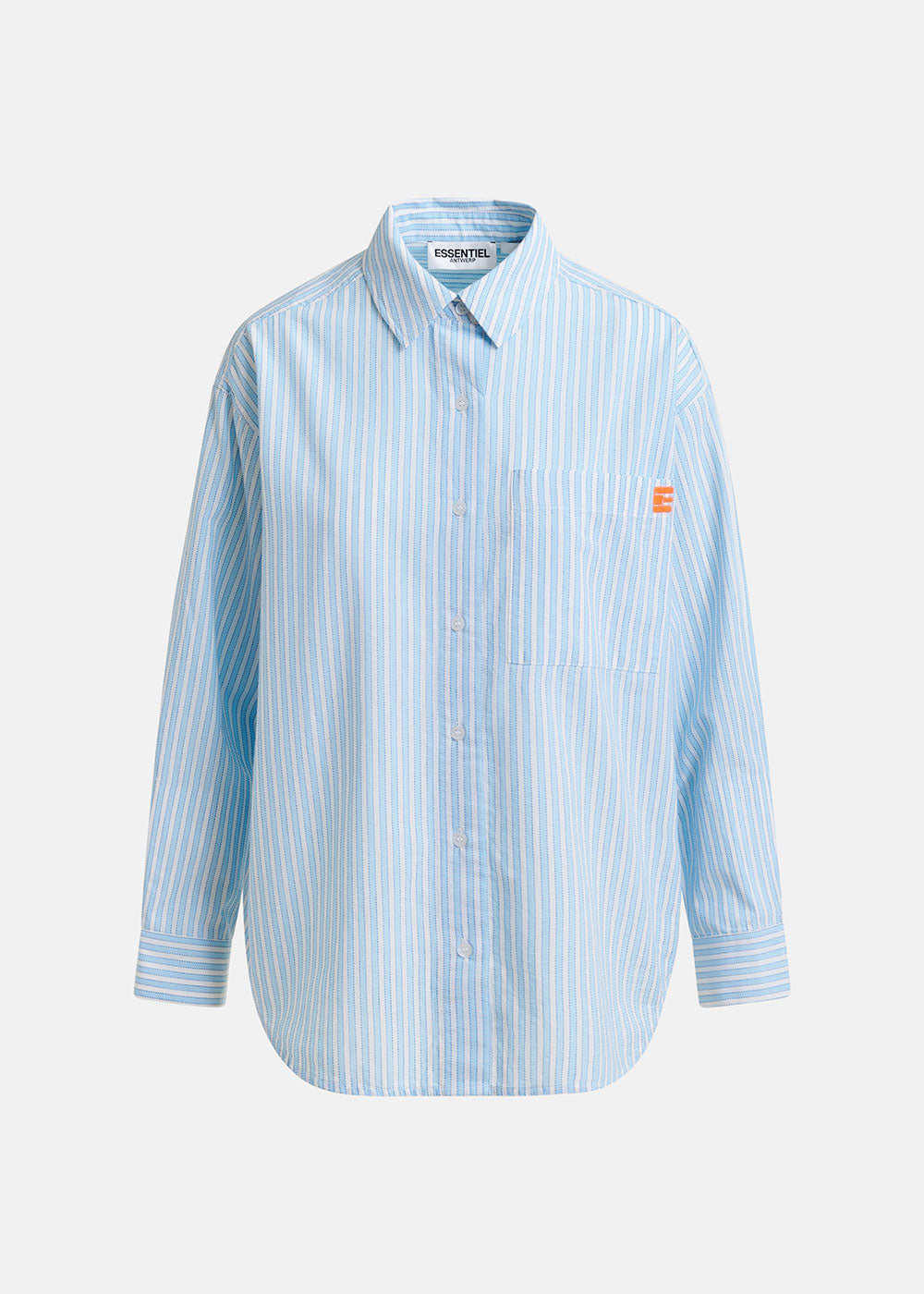 ESSENTIEL ANTWERP Blue and white striped cotton shirt with embroidered detail