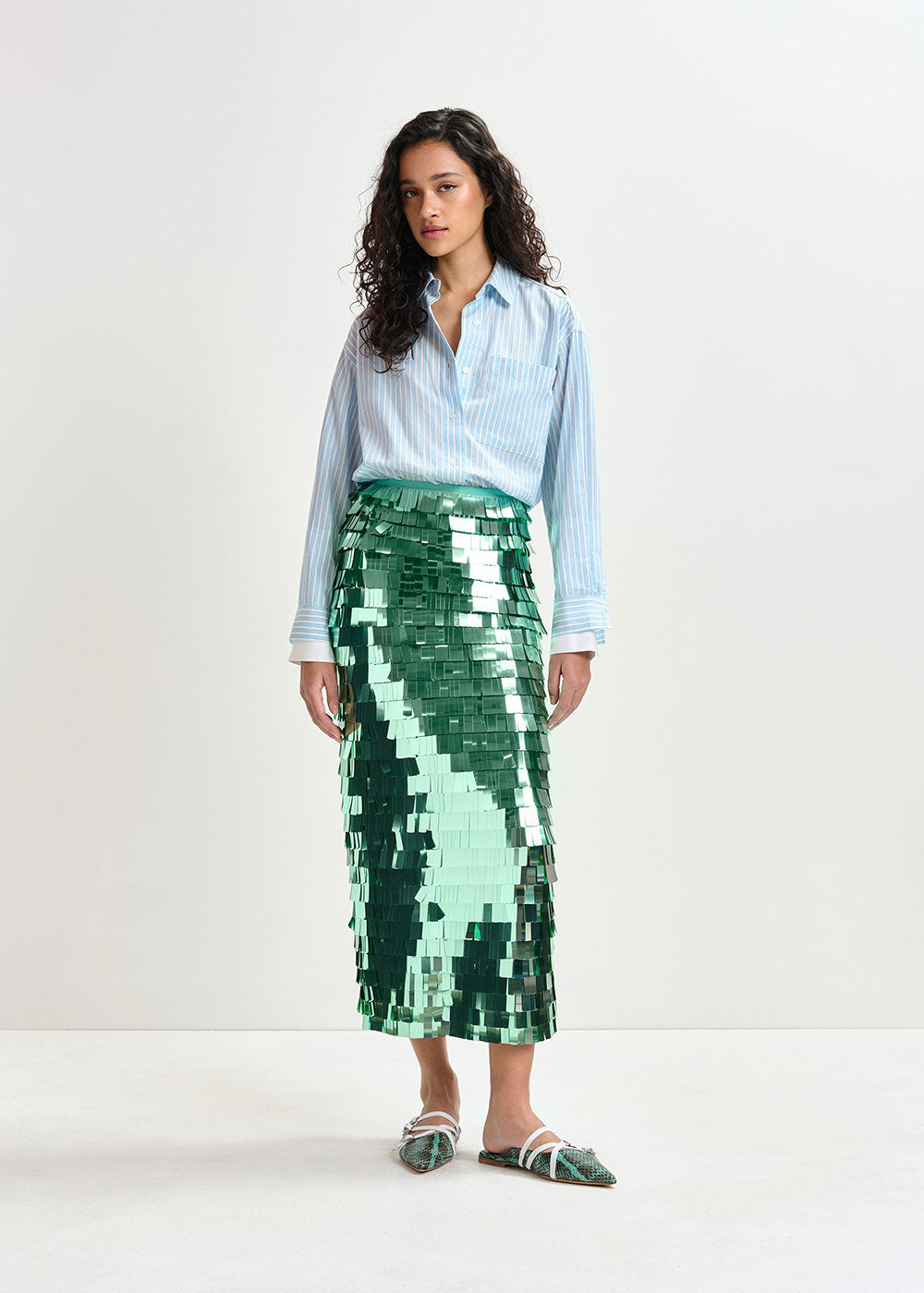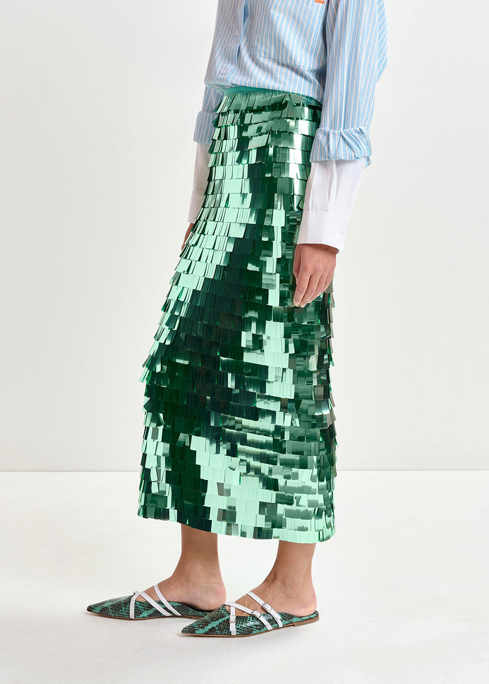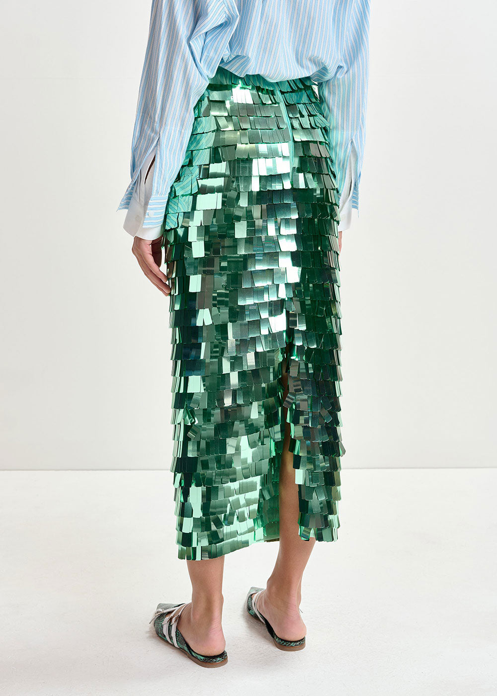 ESSENTIEL ANTWERP Green pencil skirt with sequin embellishments