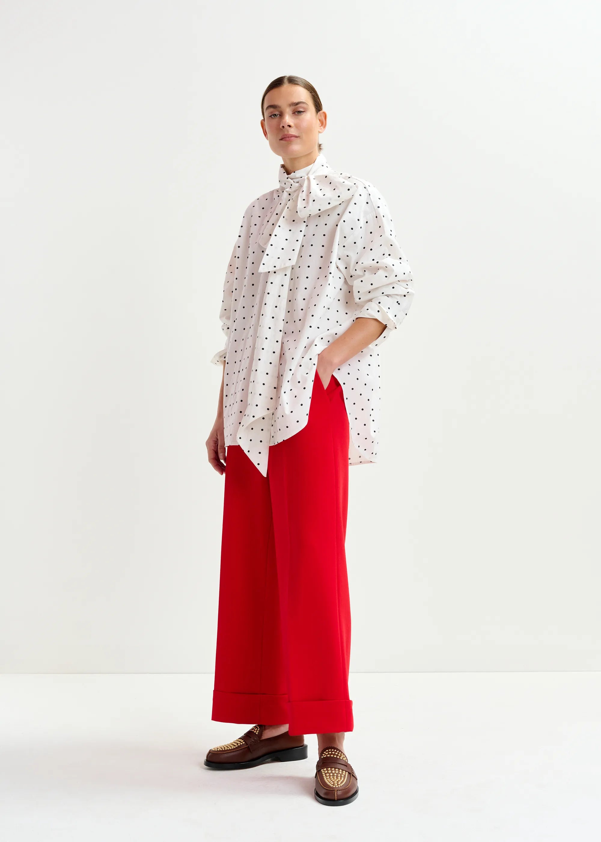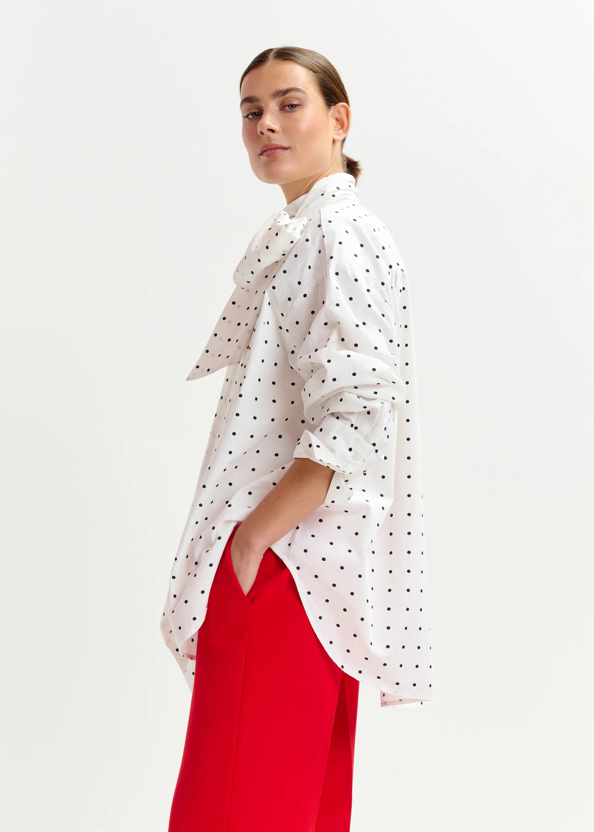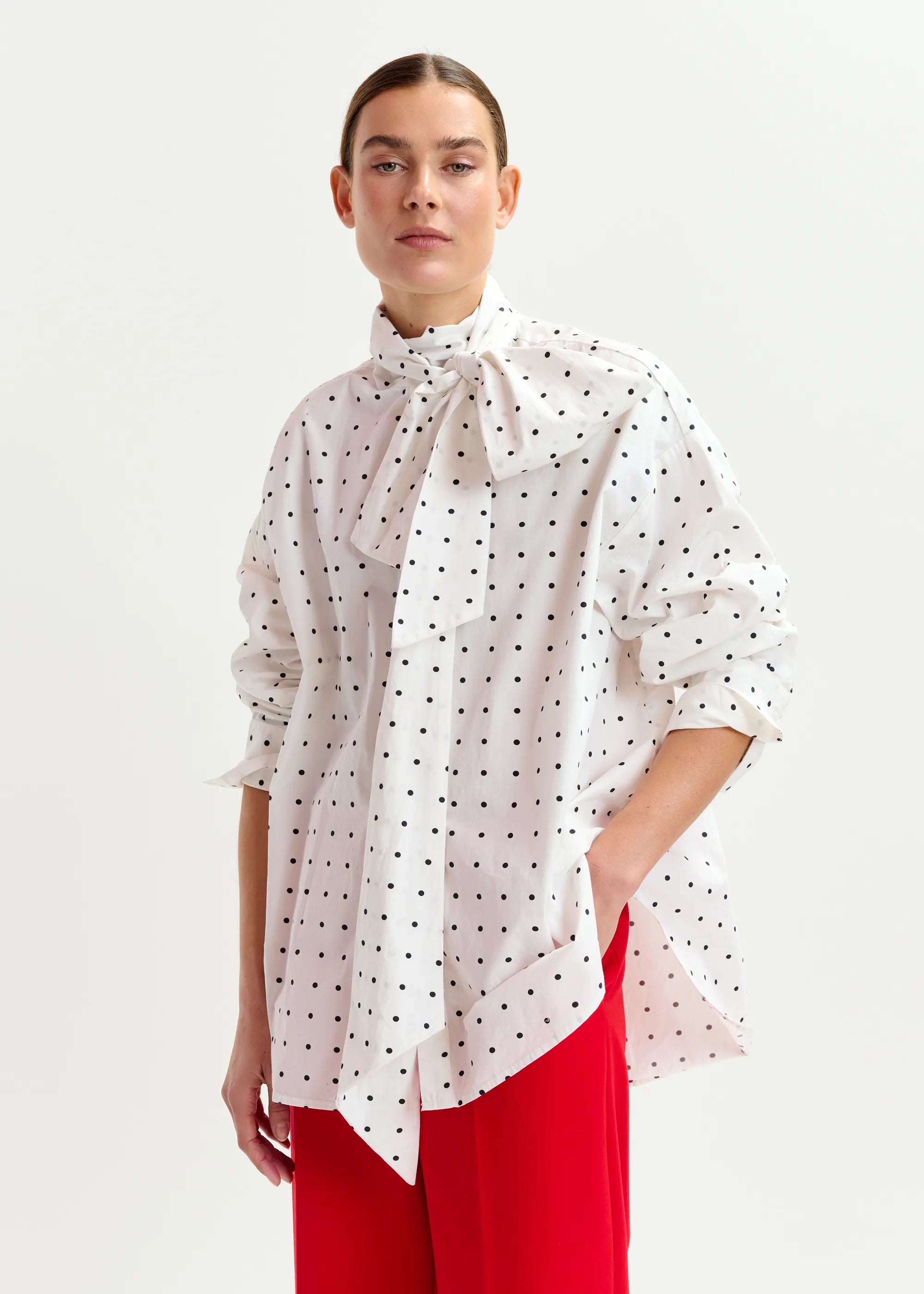 ESSENTIEL ANTWERP Imoverit White and Black Polkadot Shirt with Pussy bow