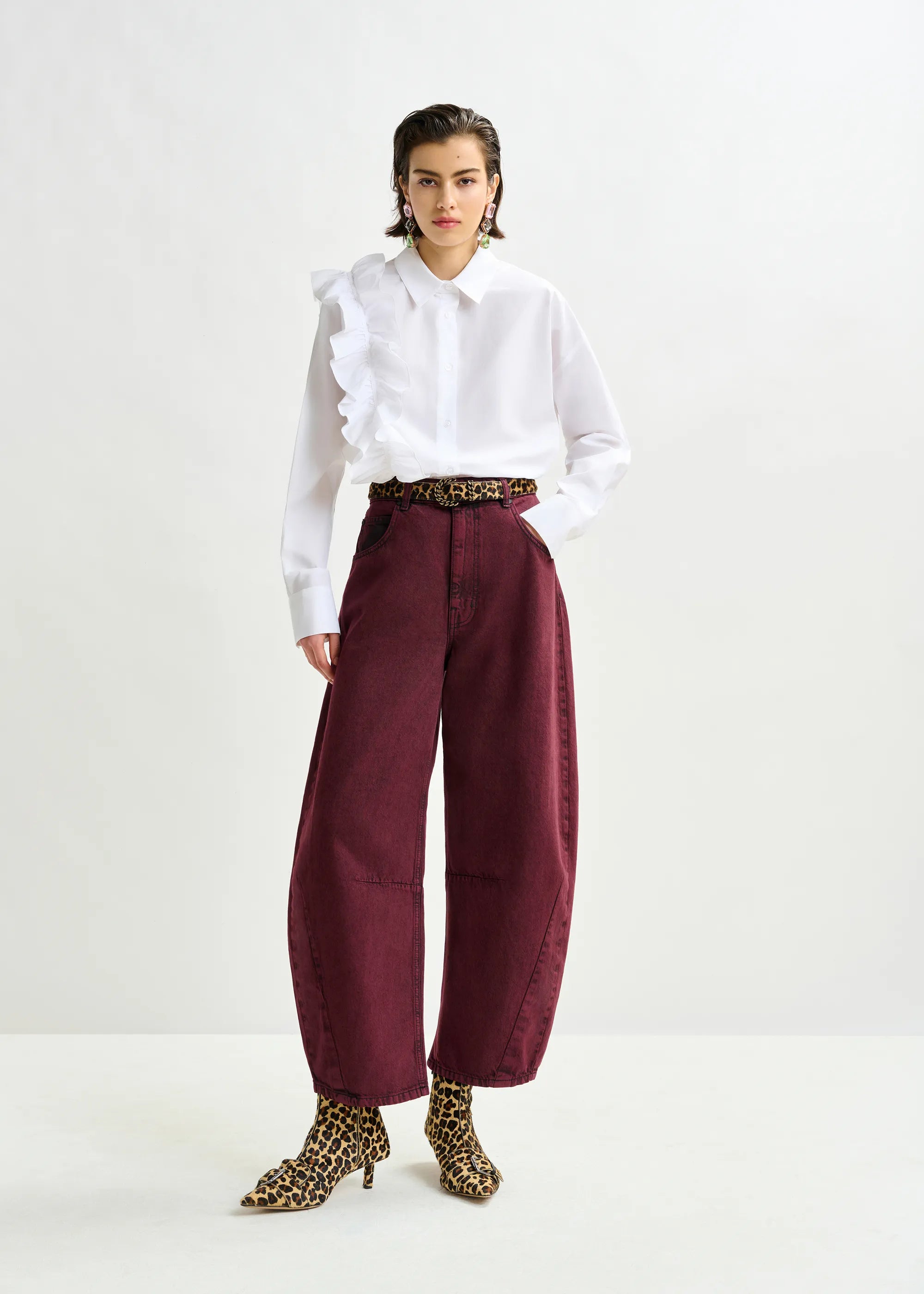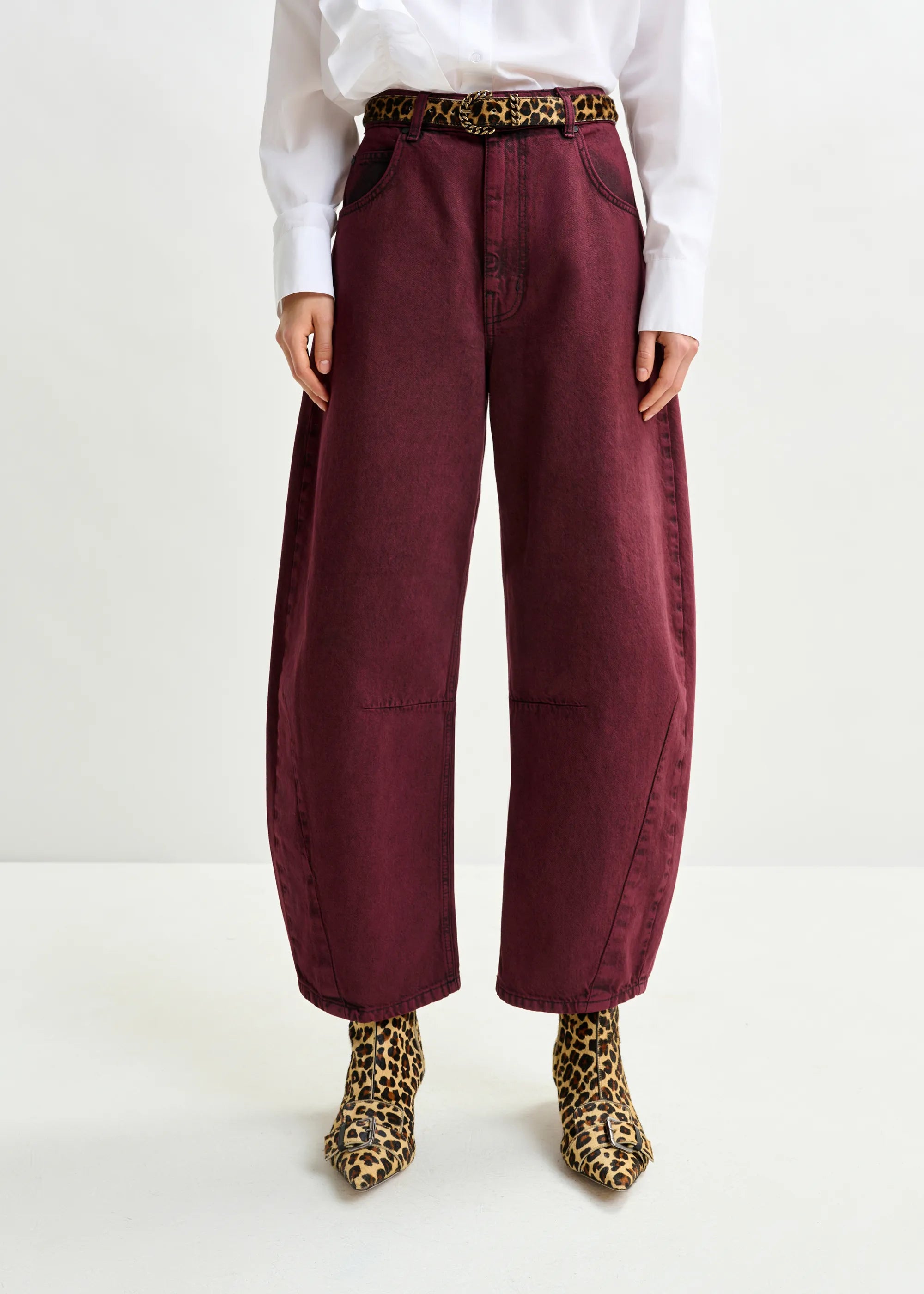 ESSENTIEL ANTWERP Impressive Burgundy Overdyed Organic Cotton Barrel-Leg Jeans
