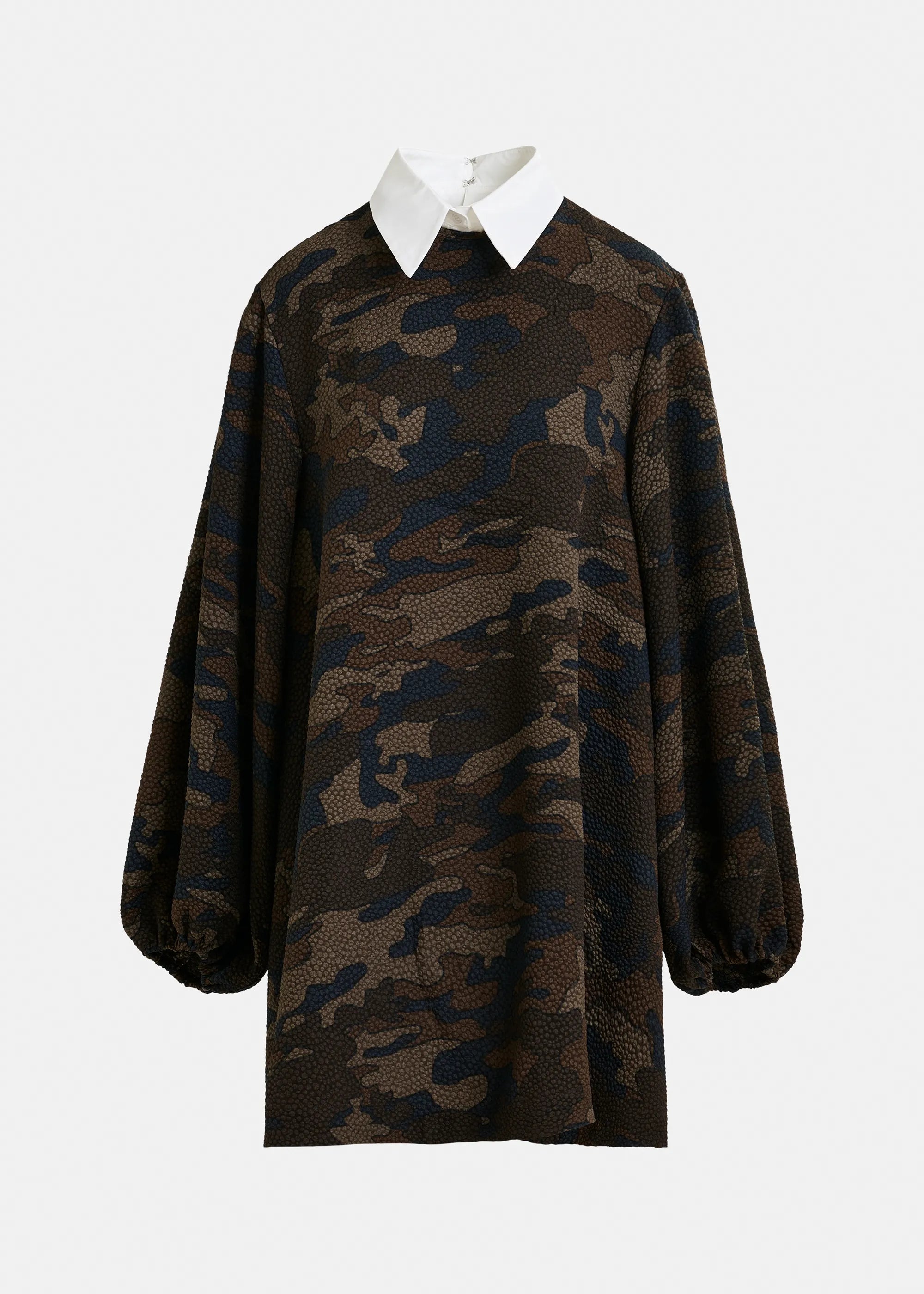 ESSENTIEL ANTWERP Brown, khaki and black camouflage A-line mini dress with removable collar