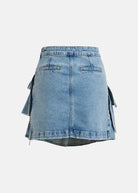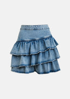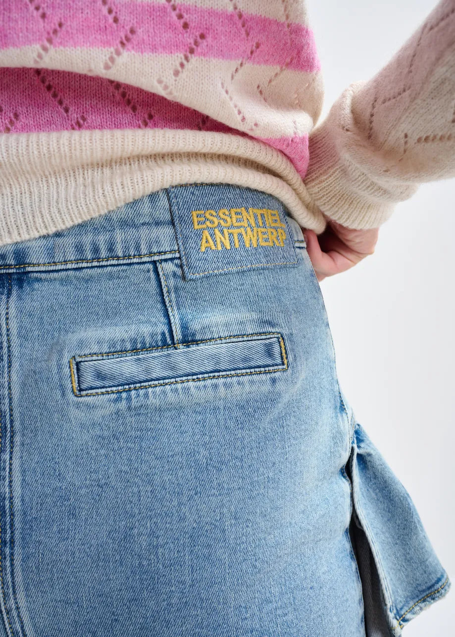 ESSENTIEL ANTWERP Blue cotton miniskirt with ruffle details