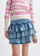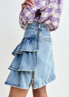 Crafted from pure cotton, this miniskirt is designed with a cascade of ruffles. The layered ruffle detailing creates dynamic movement with every step. A sleek double zip fastening runs along the side, while welt pockets at the back provide a functional finish.
