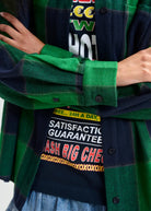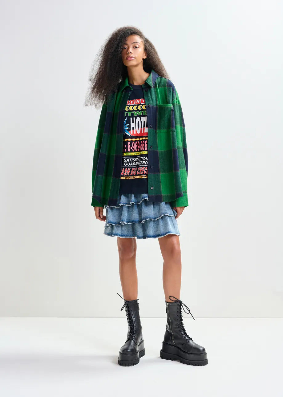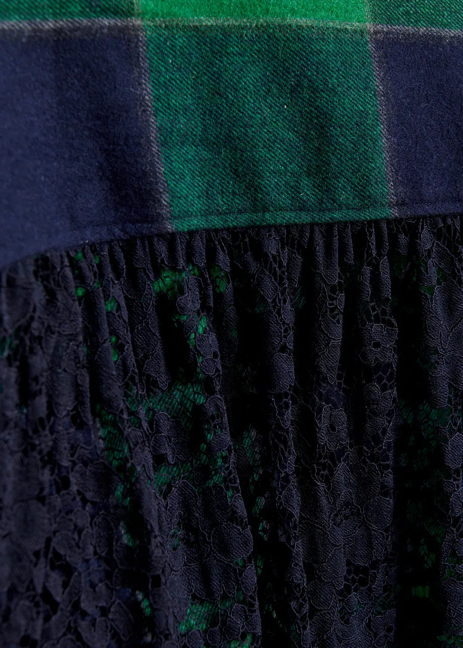 ESSENTIEL ANTWERP Green and navy wool-blend checked flannel with lace back panel