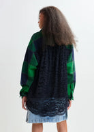 Made from a wool-blend flannel, this shirt is designed for an oversized fit with dropped shoulders and a relaxed silhouette. It features a point collar, button fastening through the front, and a chest pocket. The checked fabric is finished with a rounded hemline, cut longer at the back, and contrasted by a full lace back panel.