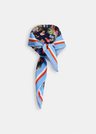 ESSENTIEL ANTWERP Blue and navy square silk scarf with multicolor floral print