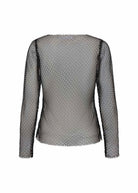 Attract attention with the KrystalCC Net Blouse from Co'Couture. This black mesh top features a delicate fishnet pattern and is finished with sparkling rhinestones throughout.