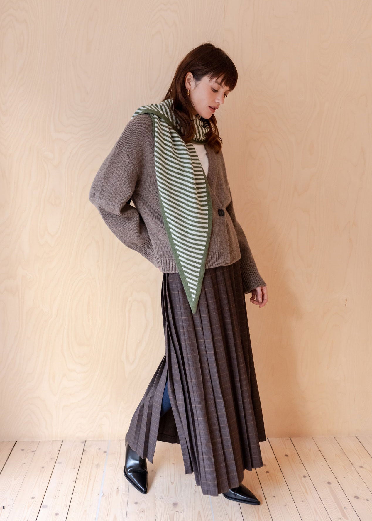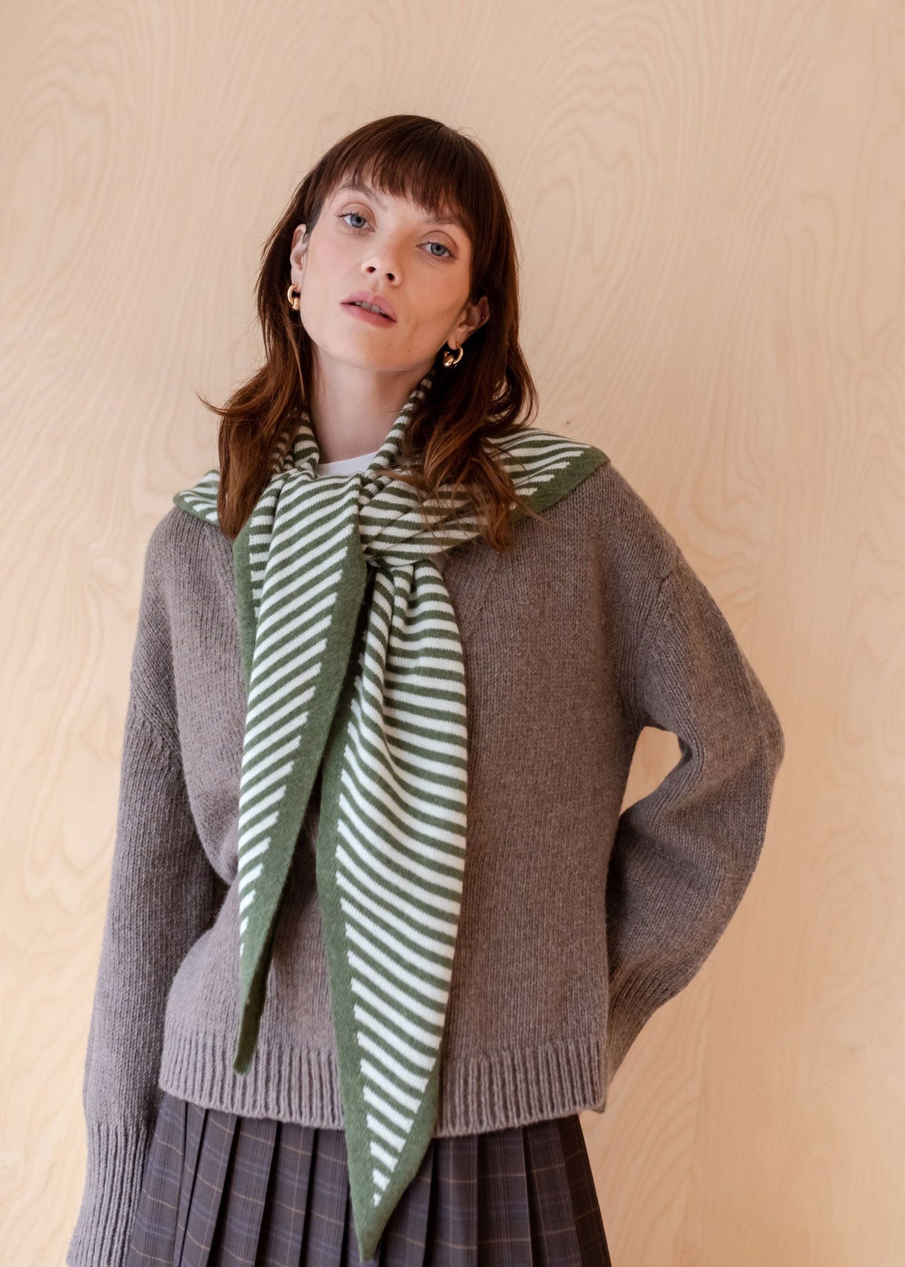 Large Merino Triangle Scarf - Green Stripe