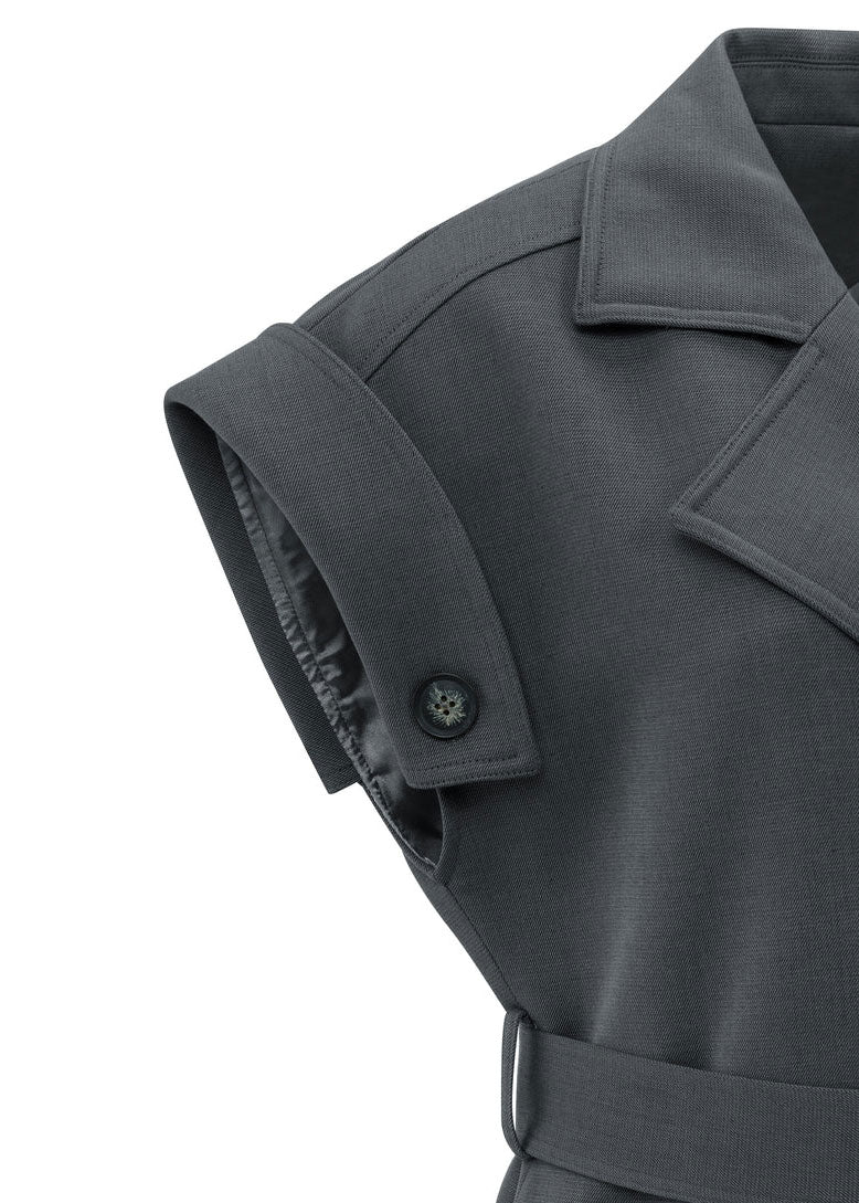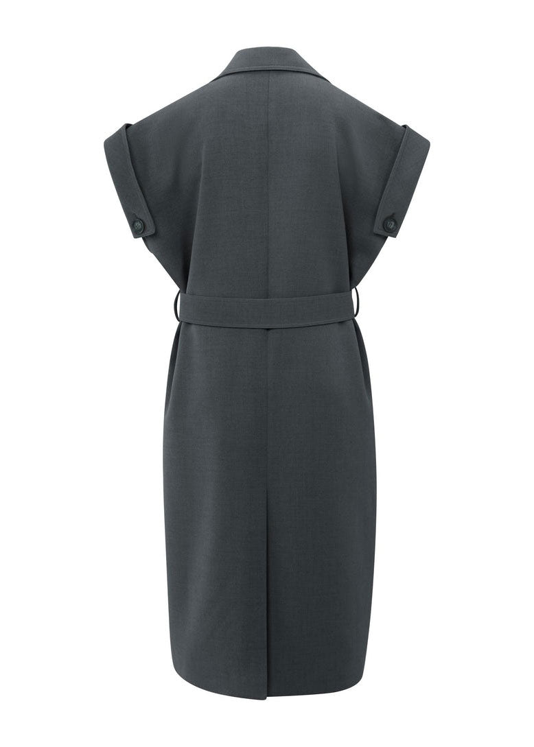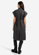 YAYA Long sleeveless coat with lapels and waist belt - Anthracite Melange
