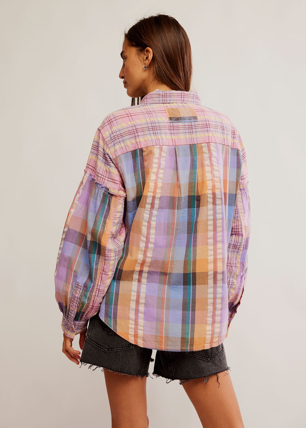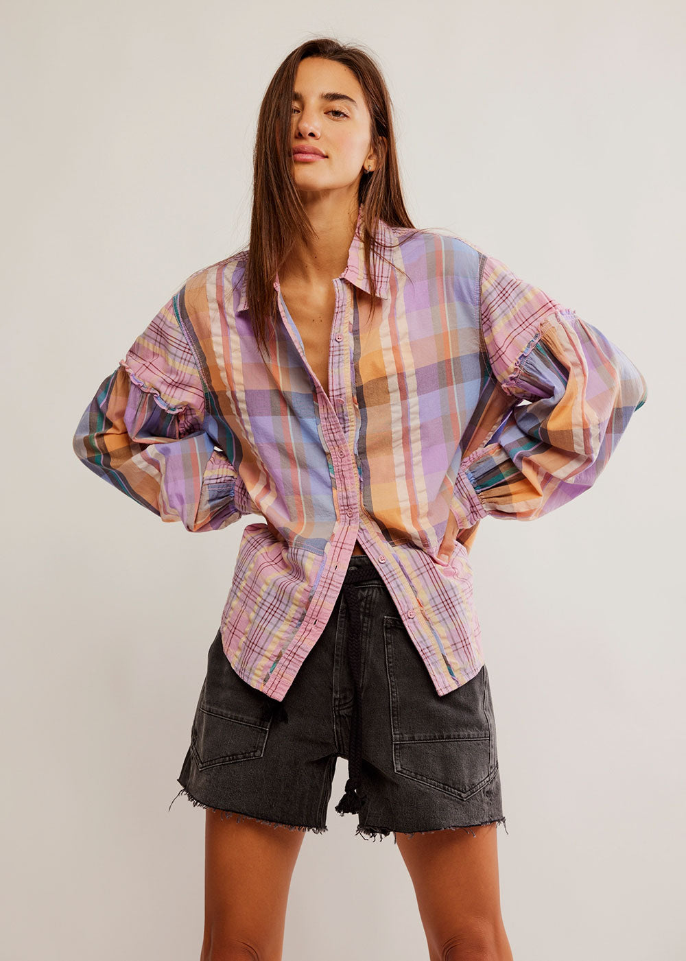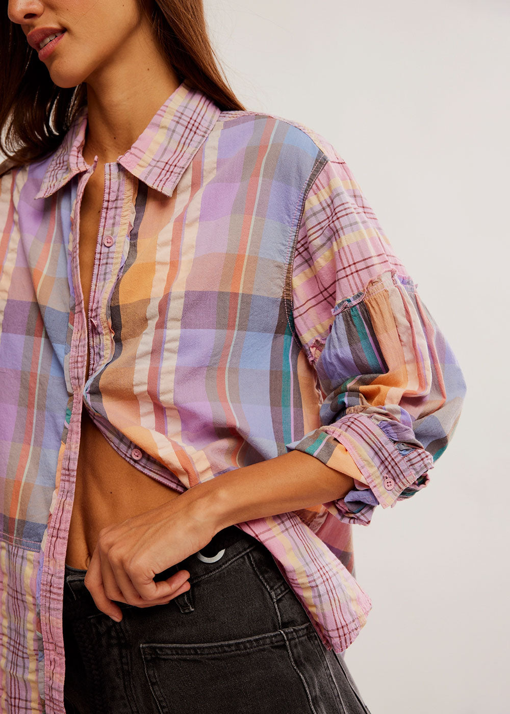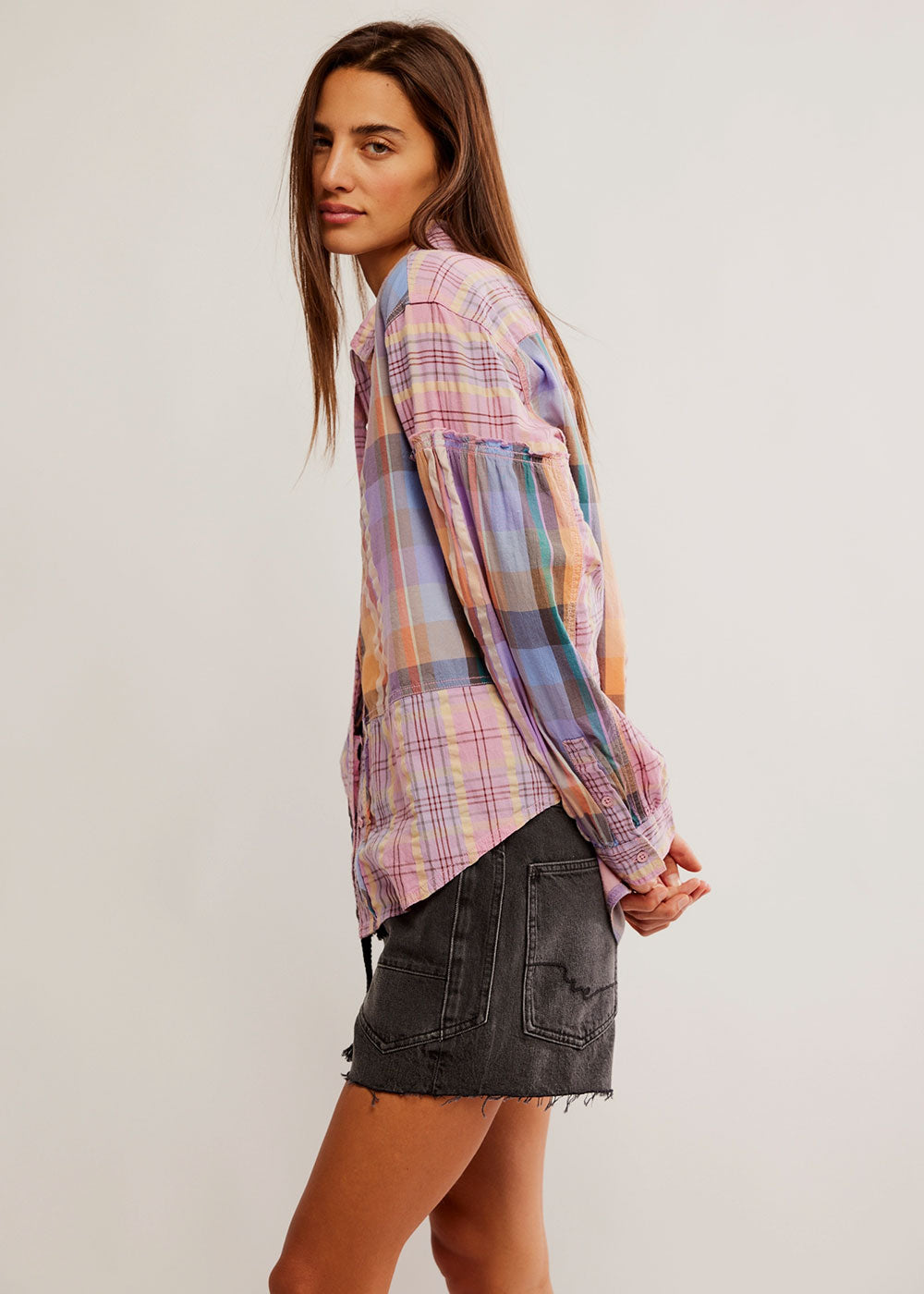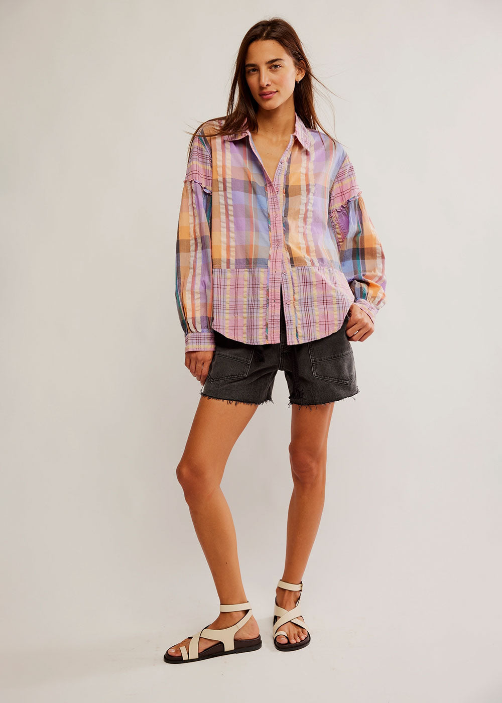 FREE PEOPLE Madras Dreams Shirt - Pink Combo