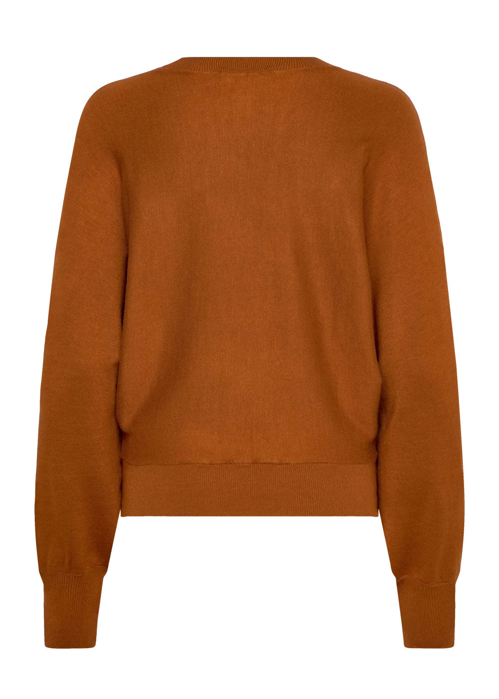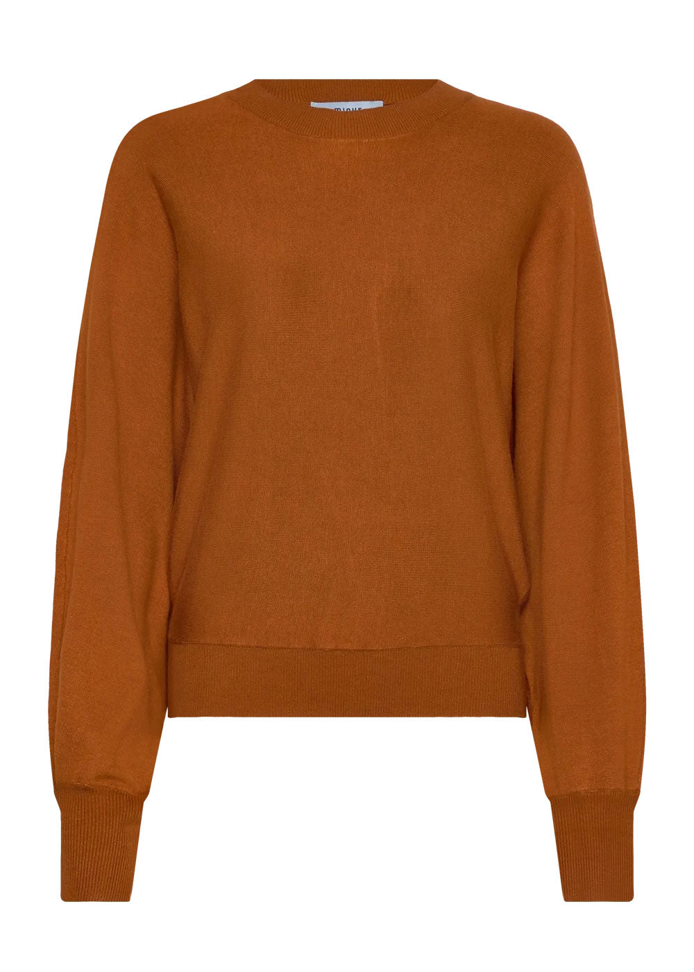 Soft and relaxed knit sweater with a round neckline and long, slightly batwing sleeves. The model has wide ribbed edges at the bottom and at the wrists, which creates an elegant silhouette with a casual touch. The loose fit and soft quality make for a comfortable and stylish everyday classic.
