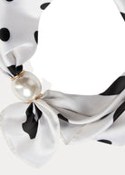 This white scarf from Co Couture features black polka dots and a luxurious satin look. Crafted from soft polyester, it features a striking pearl detail. Thanks to its lightweight material and playful print, it can be worn in a variety of ways. Perfect for adding a touch of flair to a simple outfit.