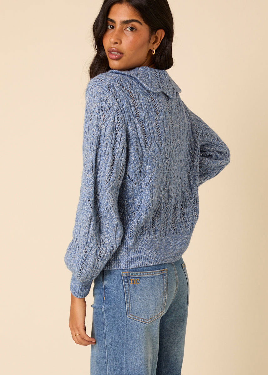 NOBODY'S CHILD Blue Pointelle Collared Knitted Cardigan