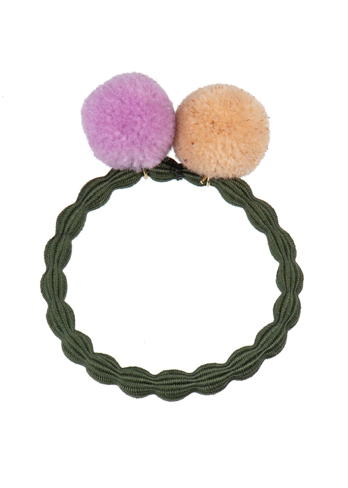 KKNEKKI Pompom Camo Hair Tie with Gold-Lavendar