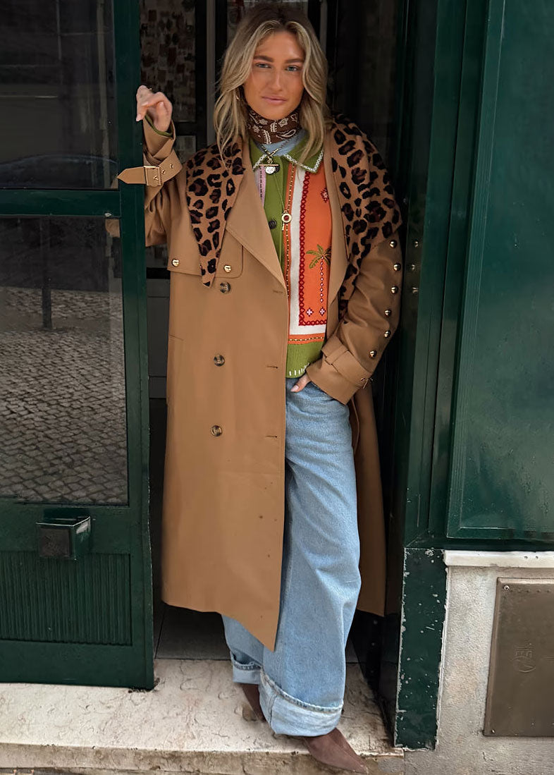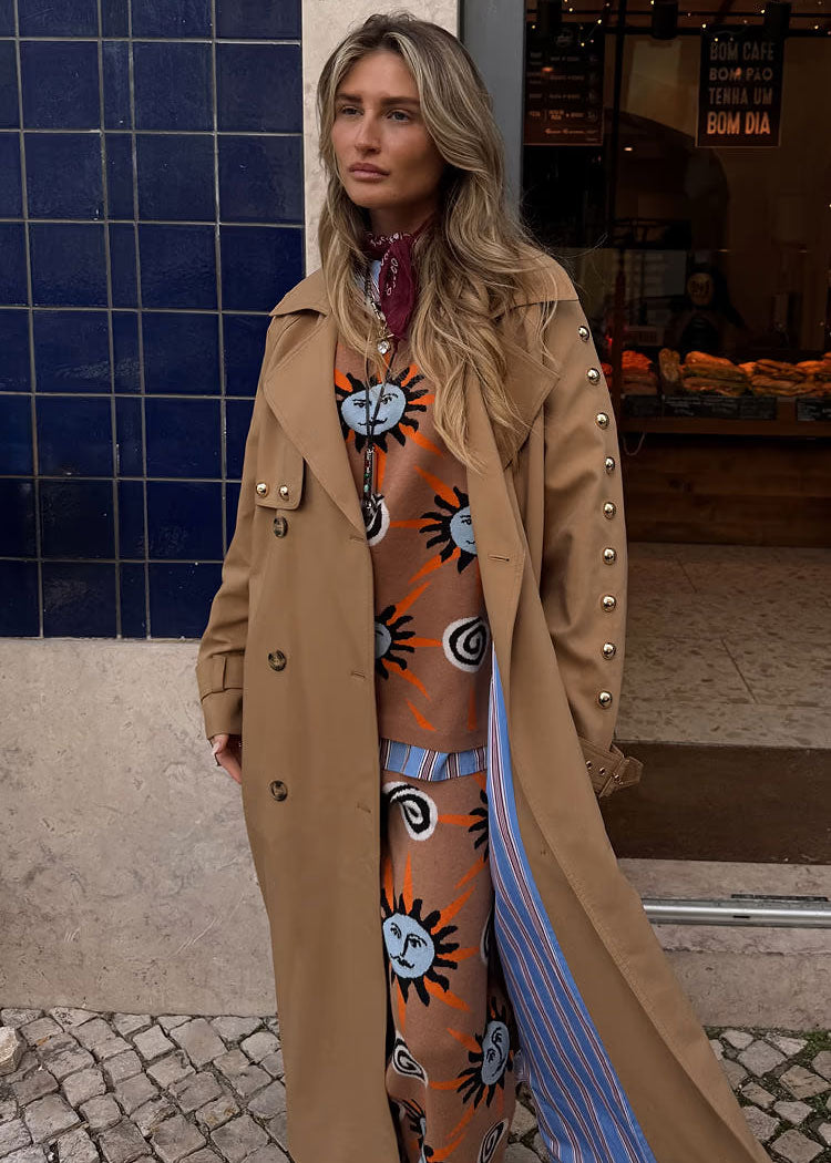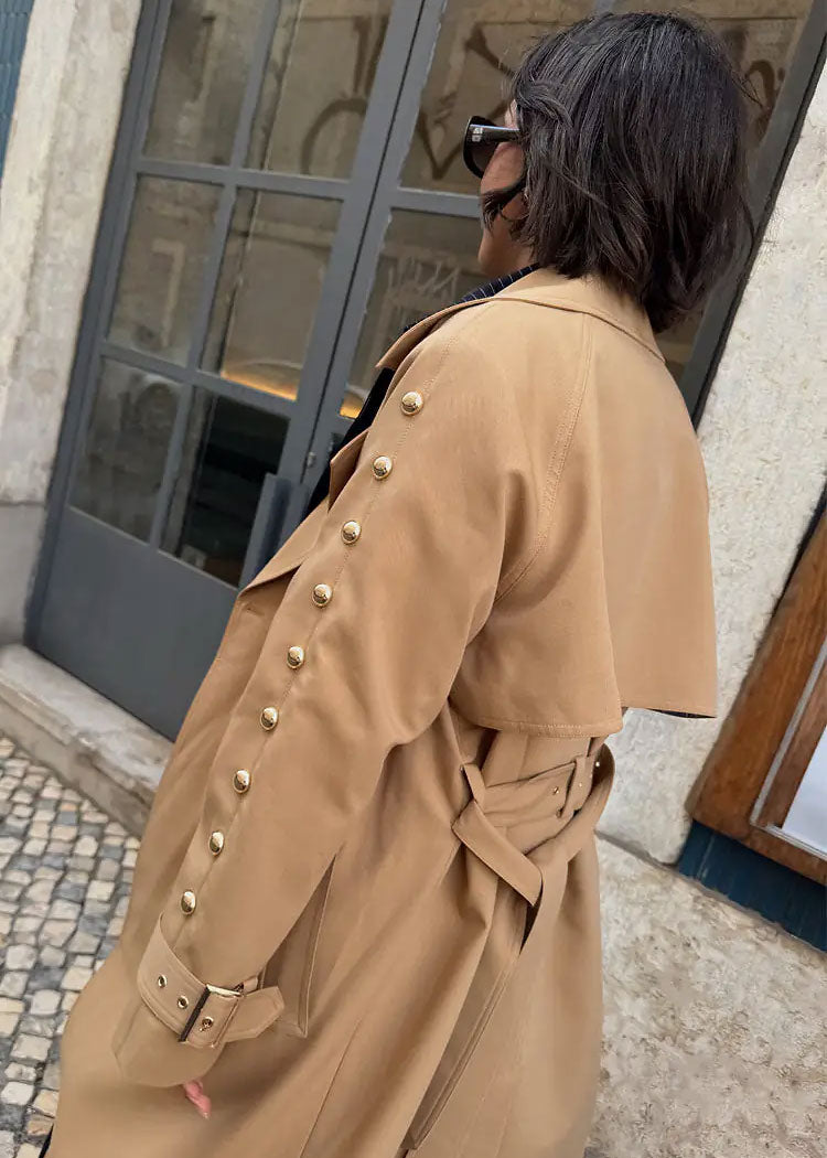 Tan Trench Coat with Gold Studs