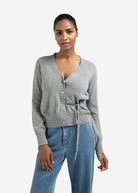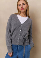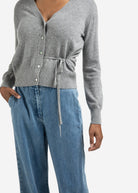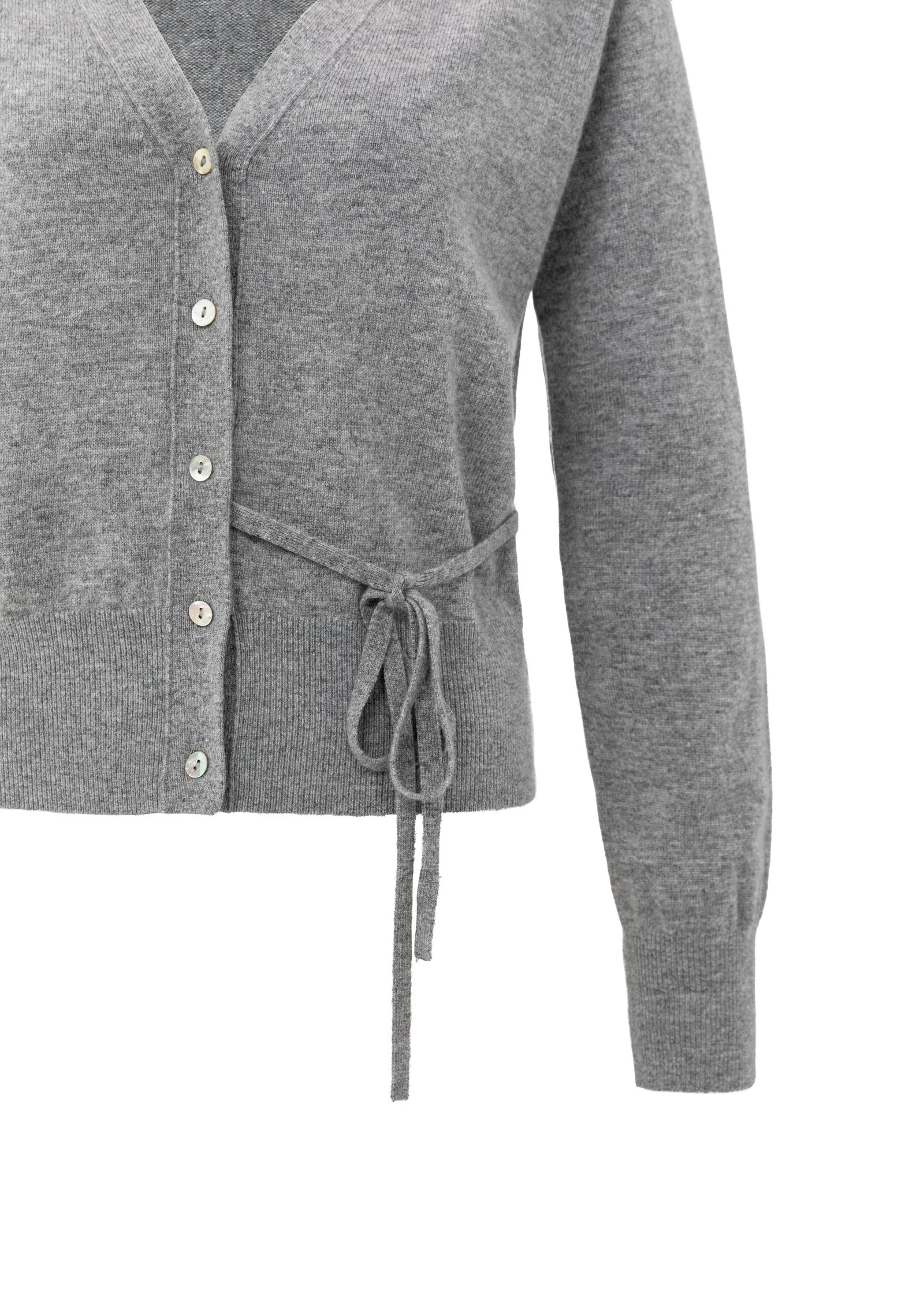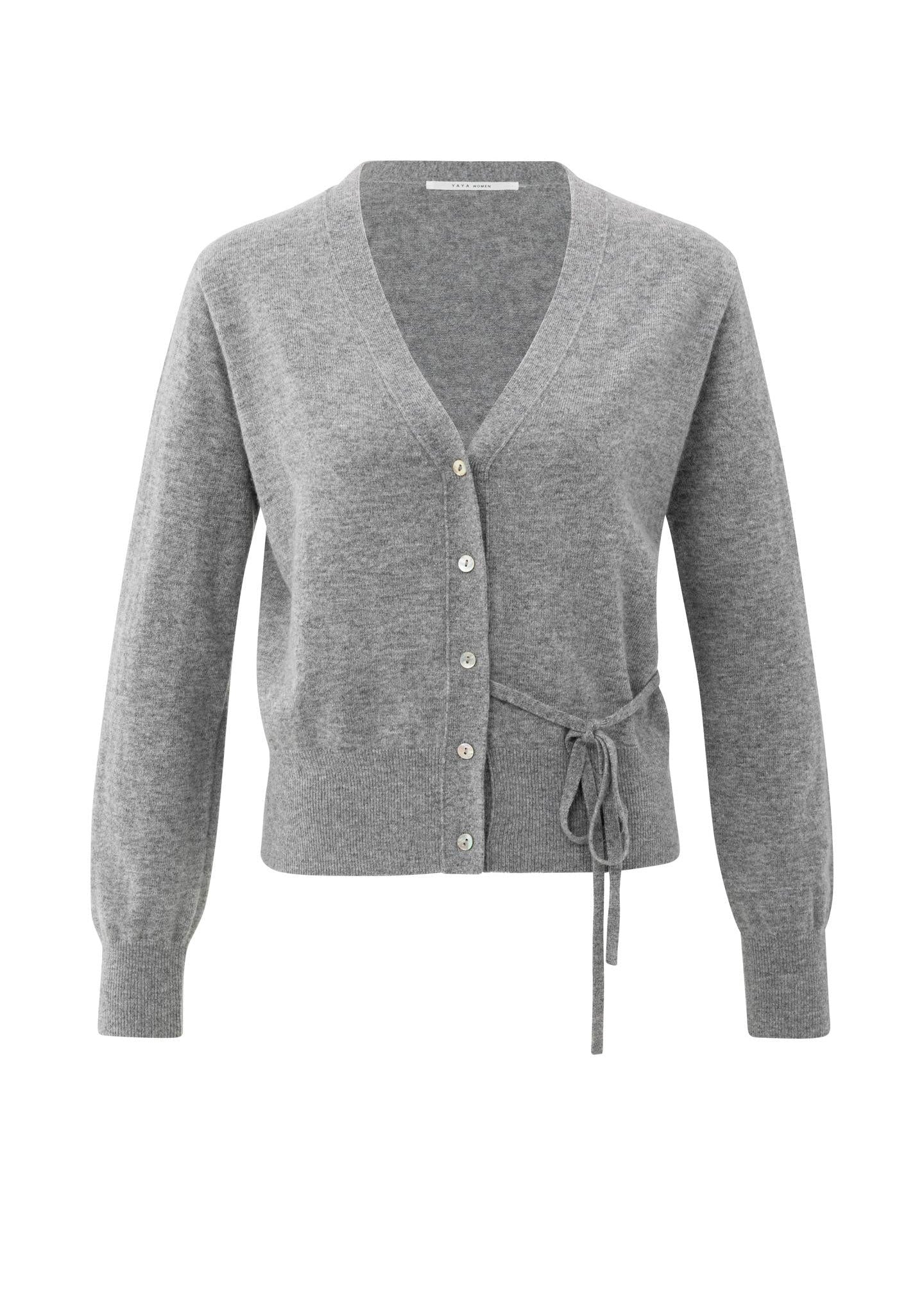 YAYA Cardigan with V-neck and tie waist - Medium Grey Melange
