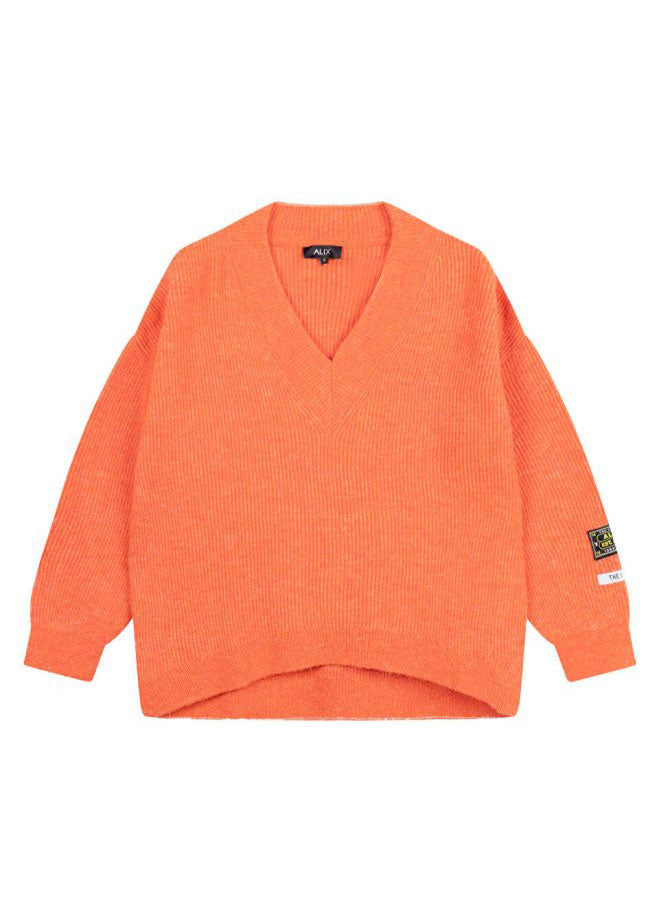 ALIX THE LABEL V-Neck Soft Pullover - Orange